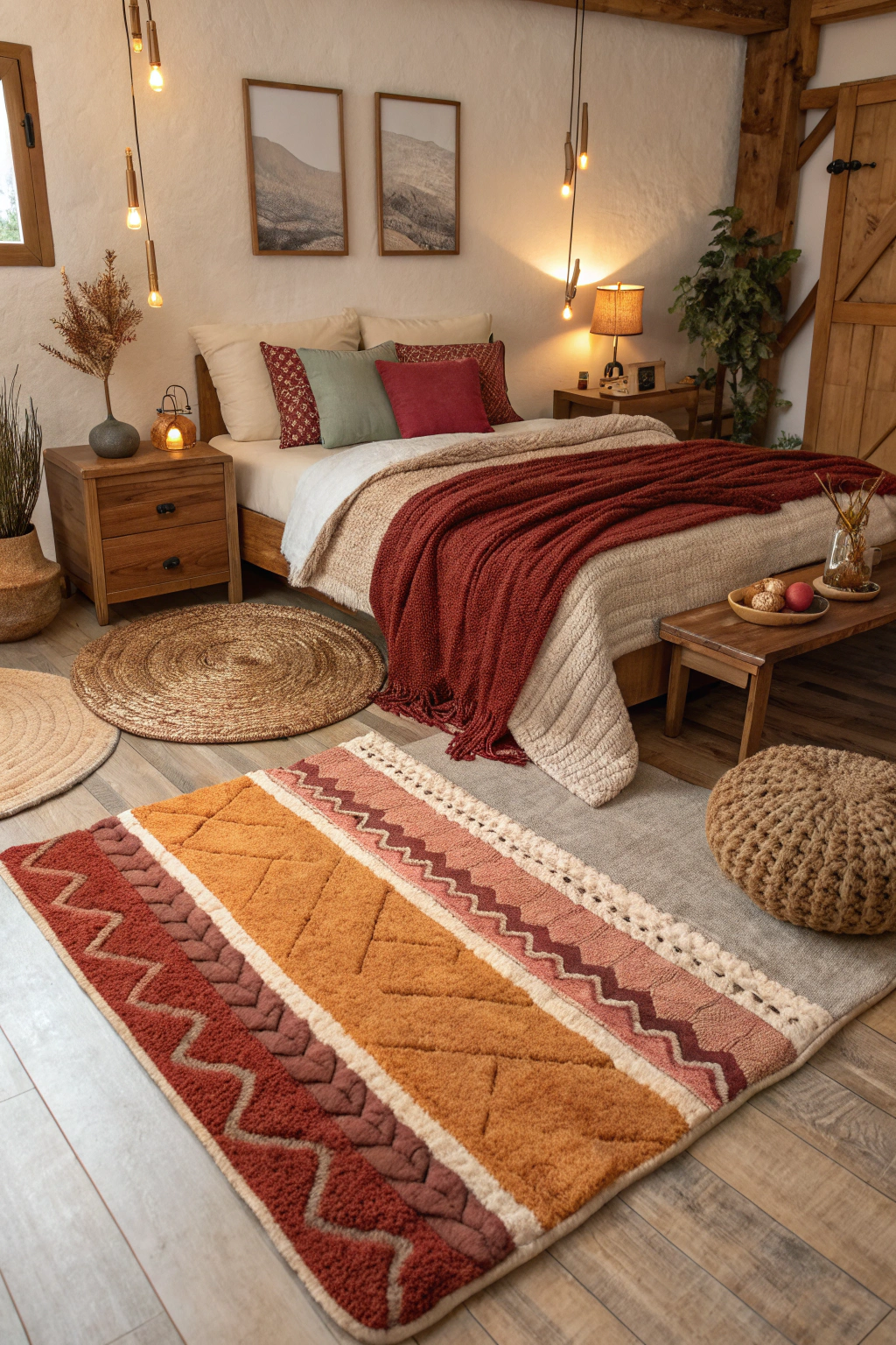 - Layer different rugs for depth.