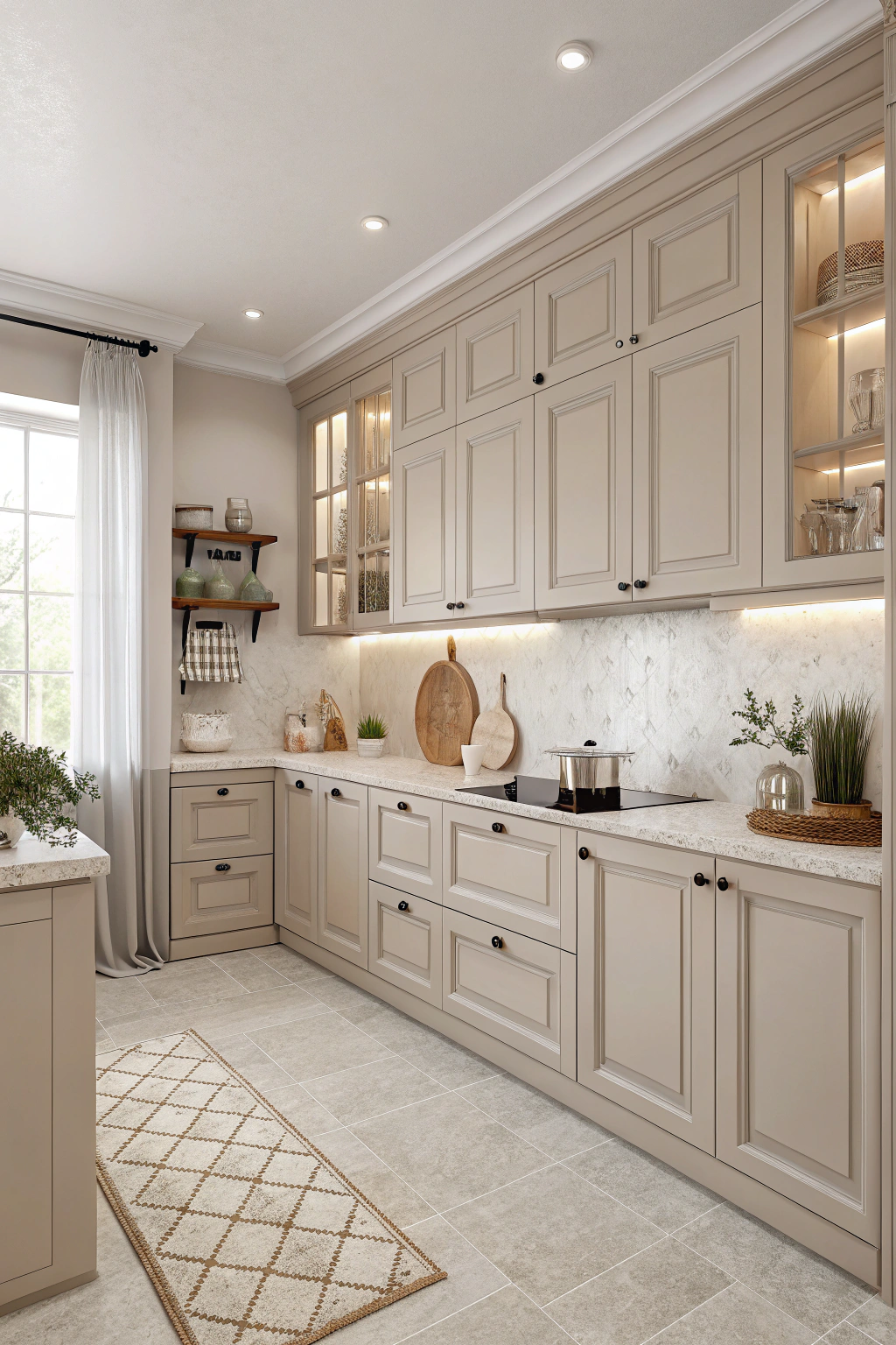 Sleek modern minimalism serves well in creating a sophisticated atmosphere, but elegant traditional charm offers a warm, inviting feel that many homeowners love. Rich wood cabinetry, intricate moldings, and classic fixtures add character to your kitchen. Soft, muted colors enhance the cozy vibe while vintage accessories create a sense of history. Embrace this timeless style to make your culinary space feel truly special.