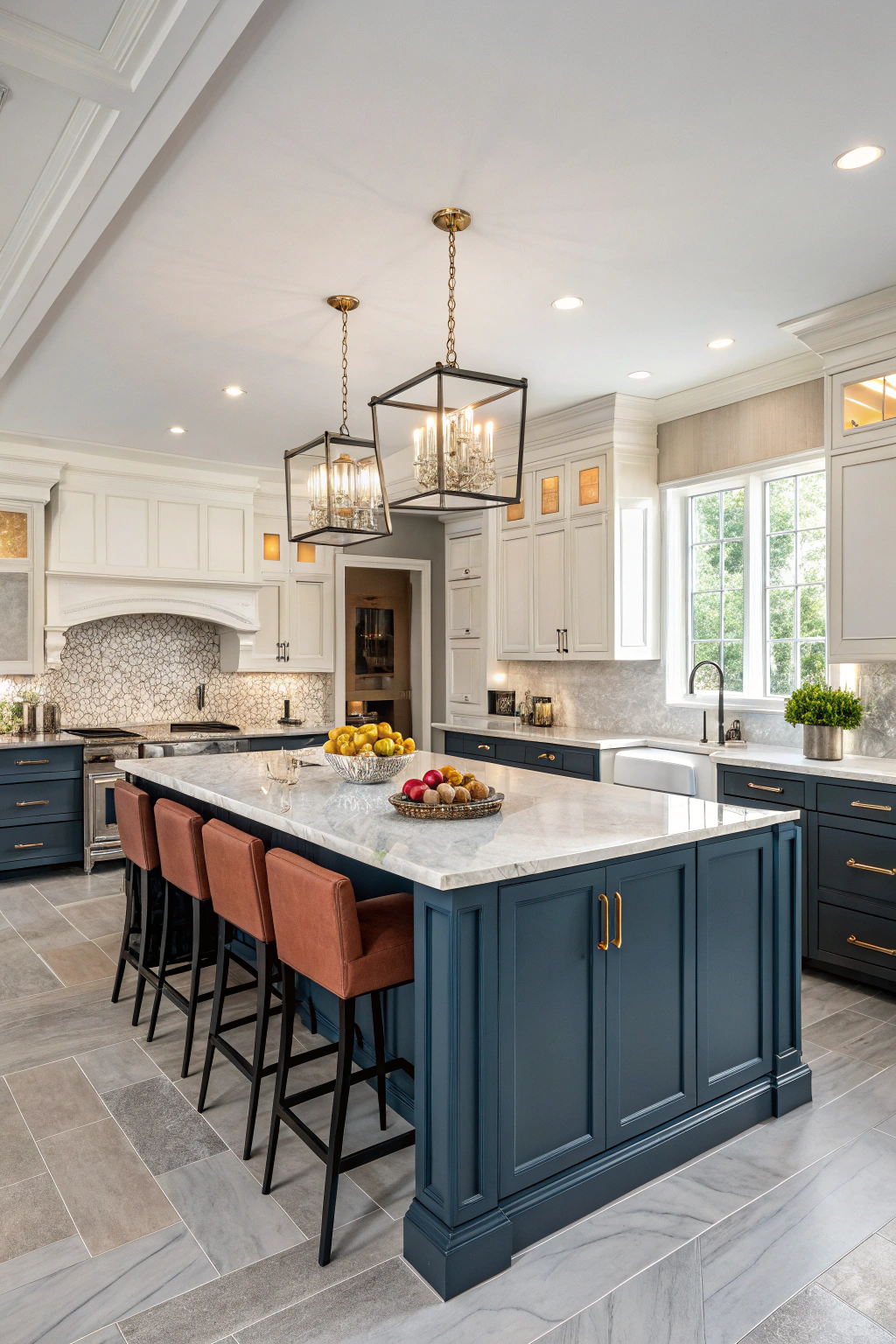 Two-tone cabinets set the stage for another standout element in luxury kitchen design: statement islands. These islands serve not just as functional spaces for meal prep but also as bold focal points. Choose unique shapes, vibrant colors, or dramatic materials to showcase your personal style. With ample seating and integrated appliances, statement islands blend beauty and practicality, enhancing both your kitchen’s aesthetics and functionality.