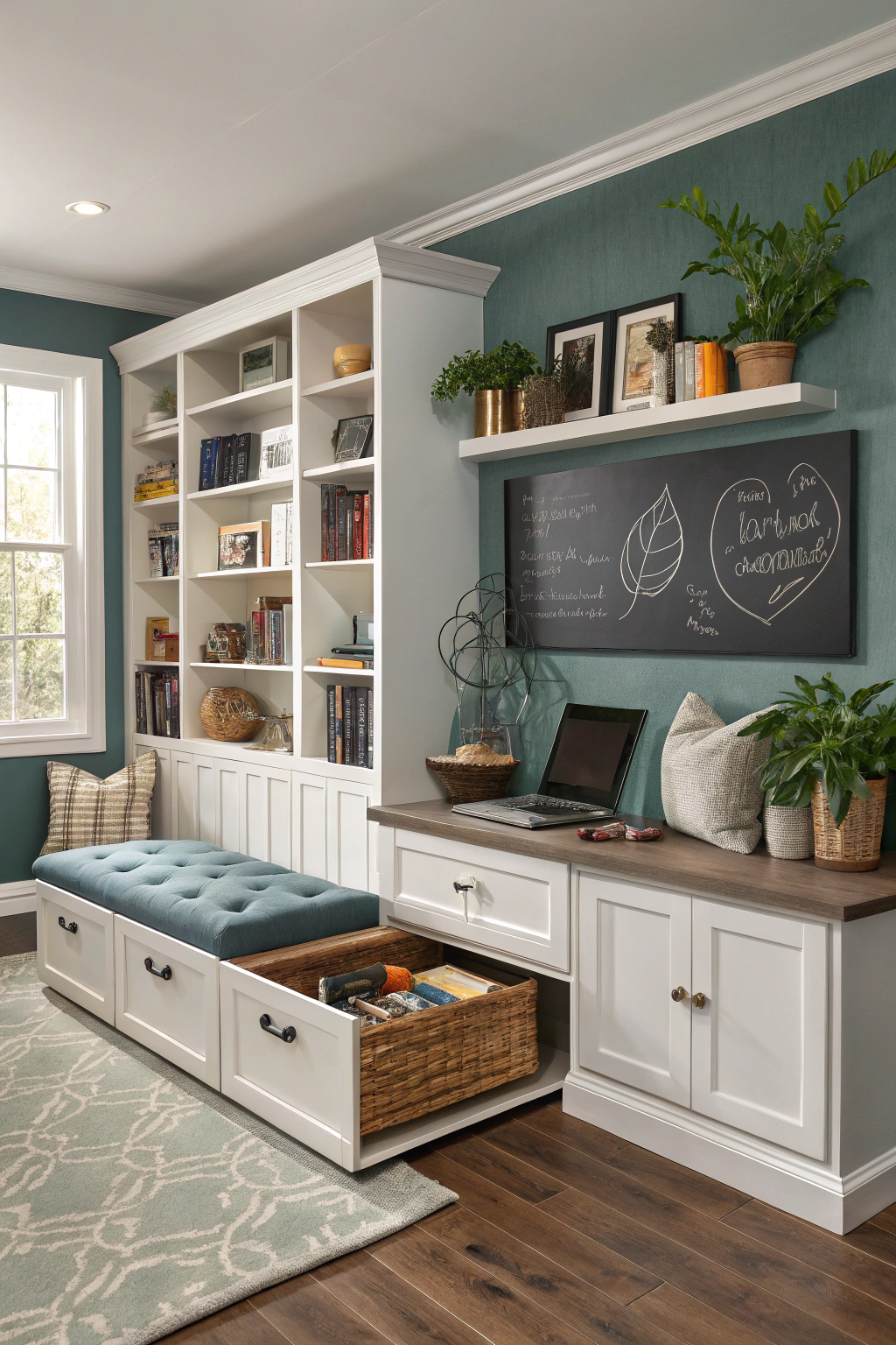 Chalkboard paint adds a playful element to your living space, but you might find yourself needing more practical solutions as you manage your belongings. Hidden storage can help keep your space organized and stylish. Consider these ideas: