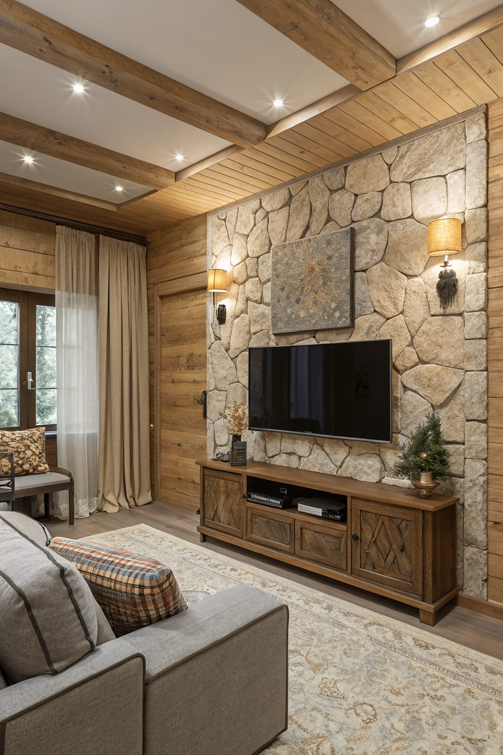 - Wood paneling for a warm, natural feel