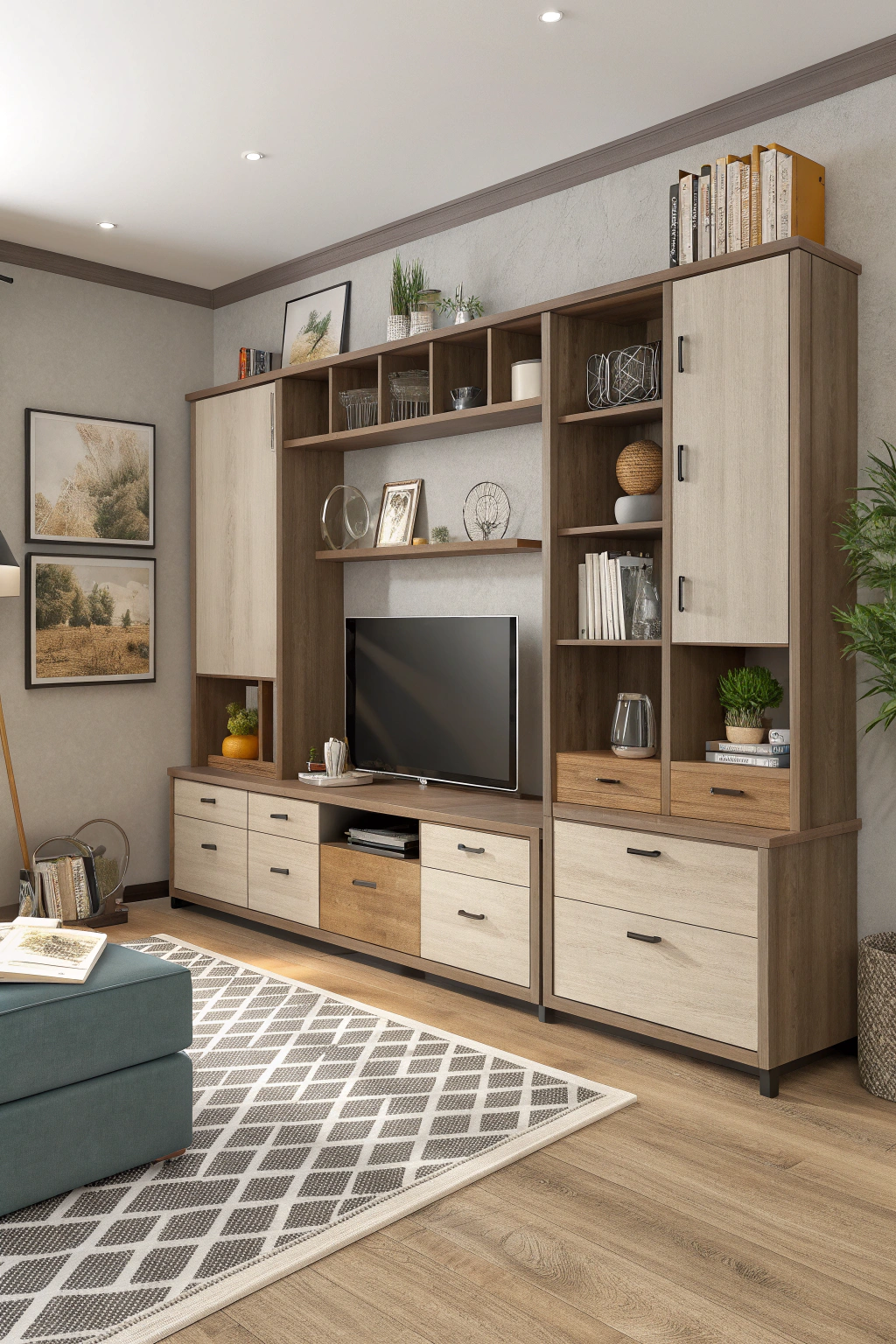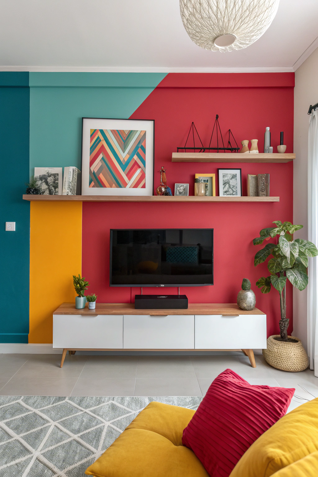 These elements not only enhance comfort but also add depth and texture, making your TV wall a stunning focal point.