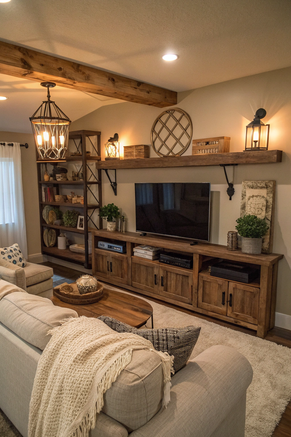 Incorporating farmhouse style elements can further enhance the cozy atmosphere created by backlit TVs in your living room. You’ll find that rustic touches invite warmth and comfort: