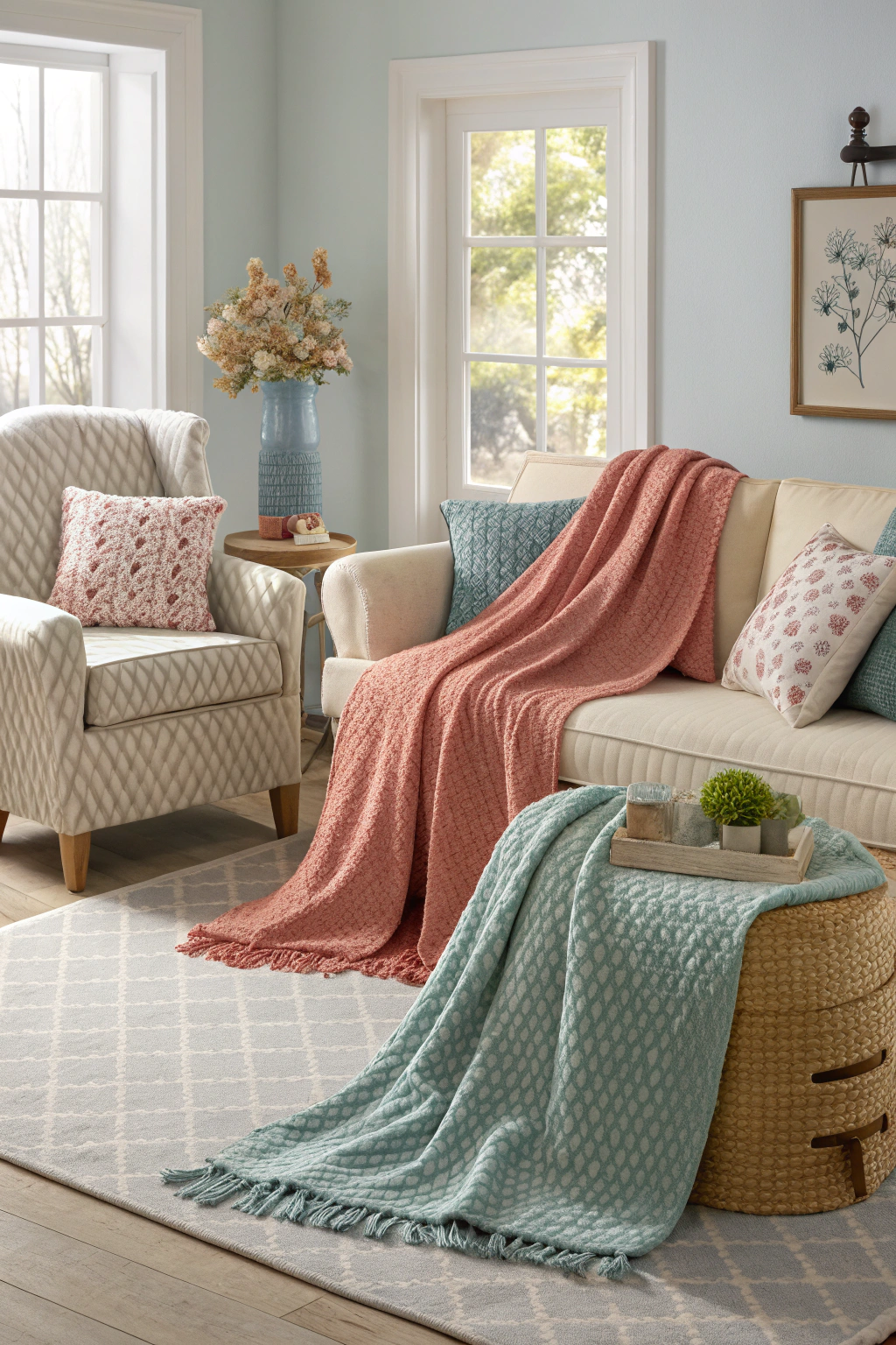 - Soft, textured throws to drape over furniture