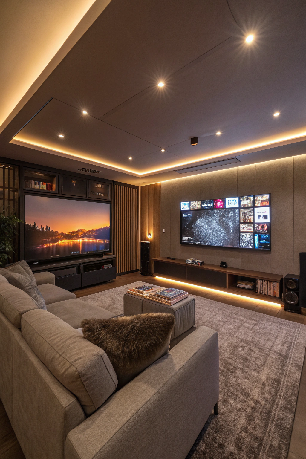 - Soft area rugs to anchor the space
