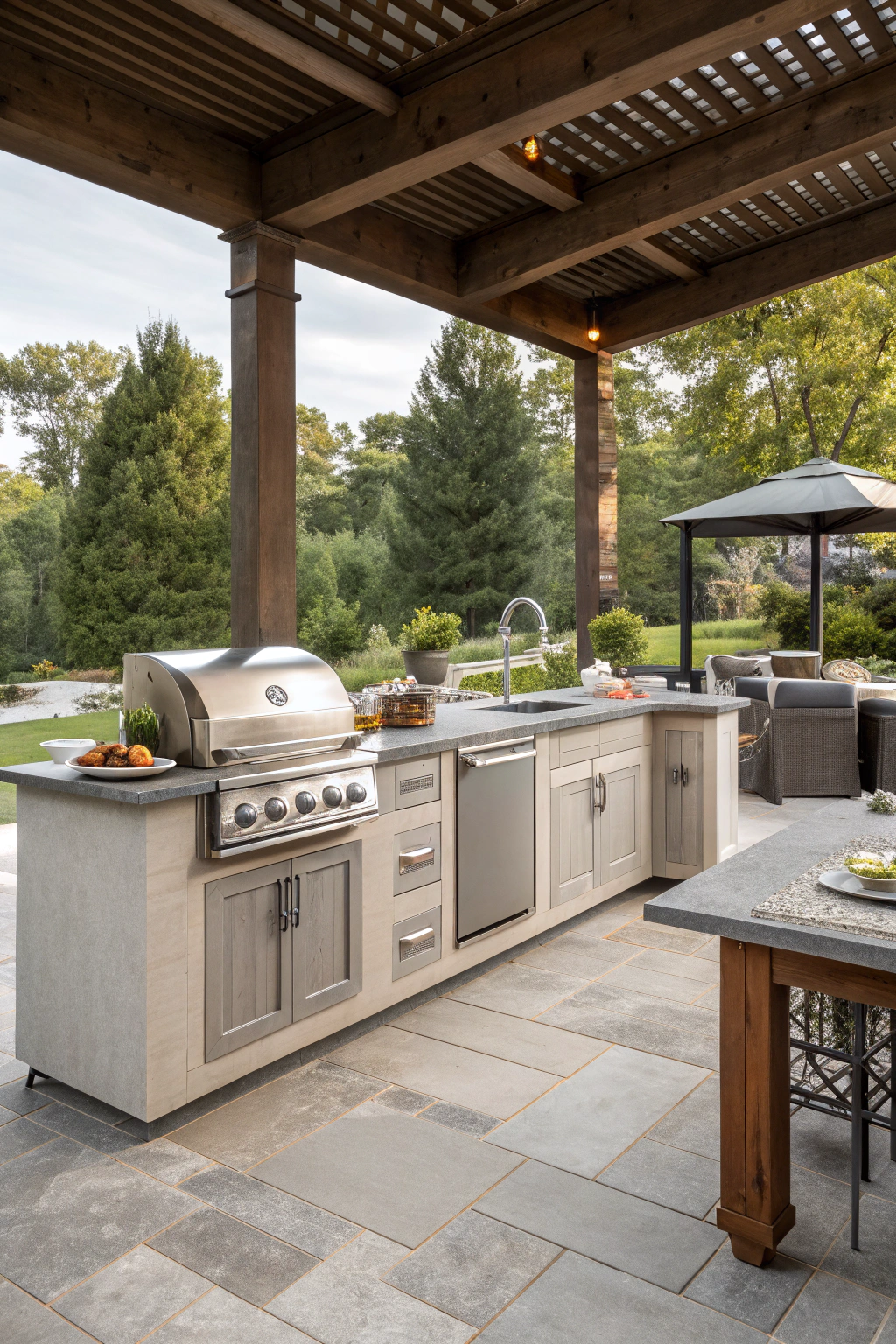 An outdoor kitchen area can transform your concrete patio into a culinary paradise. You’ll love the convenience and style it brings. Consider these essential features: