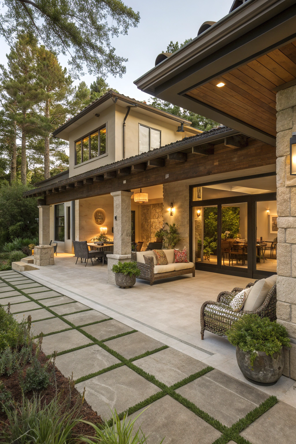 Integrating concrete slabs with patches of grass creates a visually appealing contrast that enhances the overall aesthetic of your outdoor space. This design not only provides a modern look but also encourages a natural feel. You can arrange the slabs in various patterns, allowing for creative layouts. Plus, the grassy patches soften the hard surfaces, making your patio feel more inviting and relaxing.