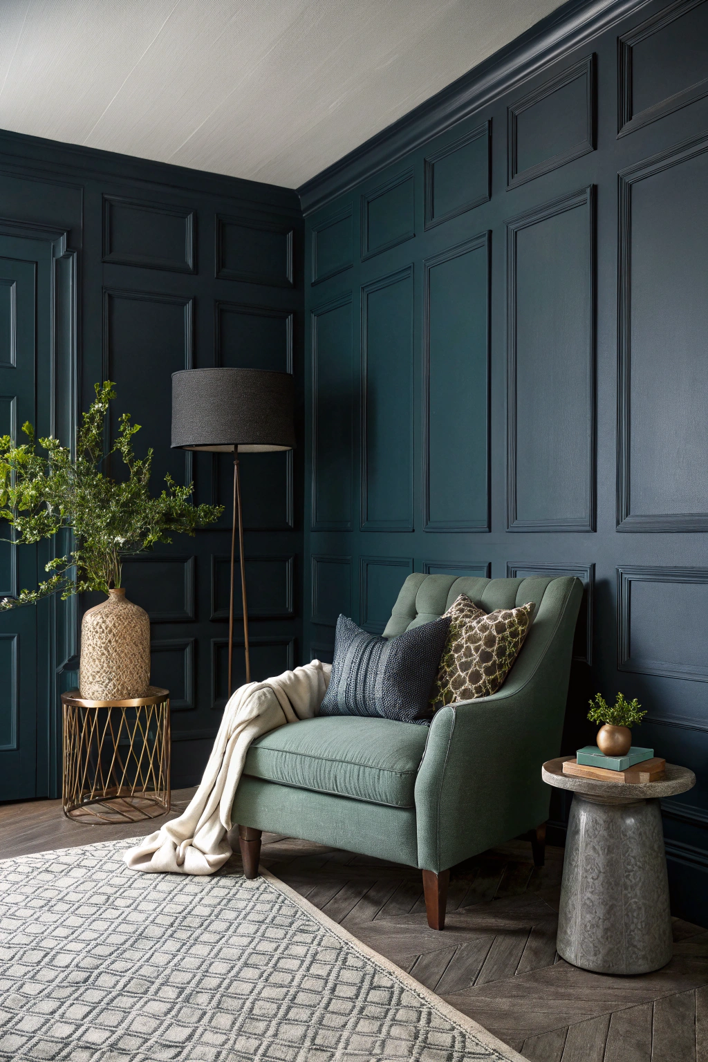 If you’ve embraced the warmth of a textured fabric wall, consider going a step further with dramatic dark paints. These shades can create an inviting and cozy atmosphere. Here are some ideas to inspire you: