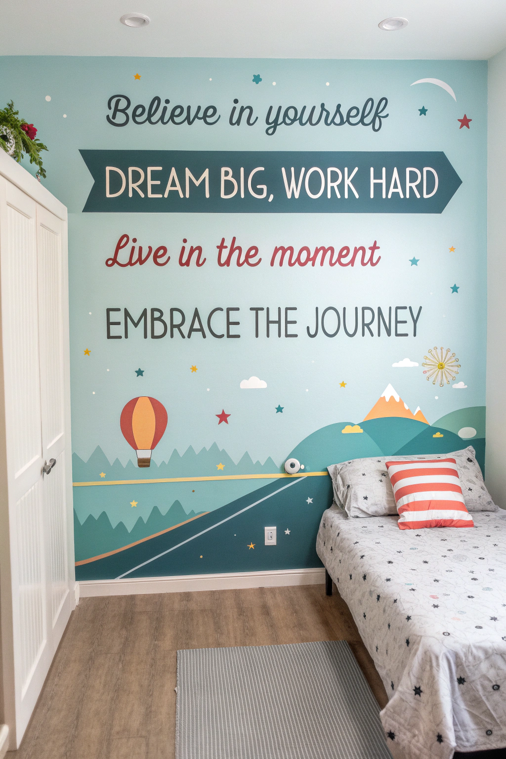 If you want to inspire positivity every day, consider adding an inspirational quote mural to your bedroom wall. Choose phrases that resonate with you, and let their messages uplift your spirits. Here are some ideas for popular quotes: