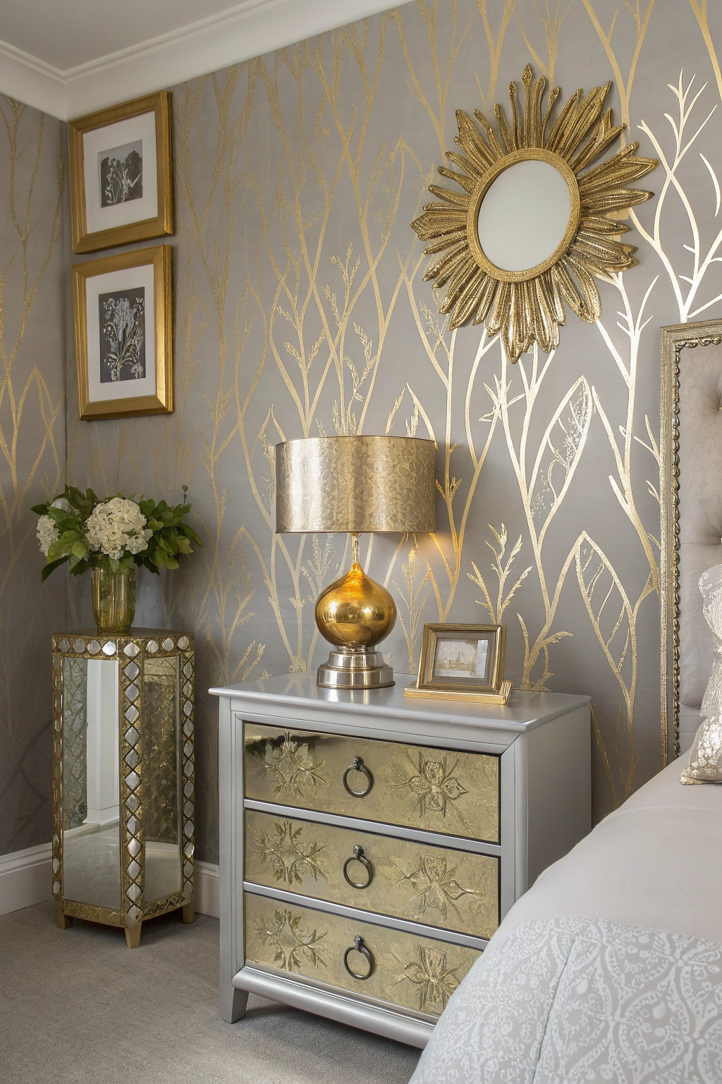 Incorporating metallic accents into your bedroom can instantly elevate its style and create a striking focal point. Consider using metallic paints, wallpaper, or stencils for an accent wall. You can also add metallic frames, decor, or furniture to complement the shimmering effect. Mixing gold, silver, or bronze tones adds depth and glamour, giving your space a modern, chic vibe that catches the eye.