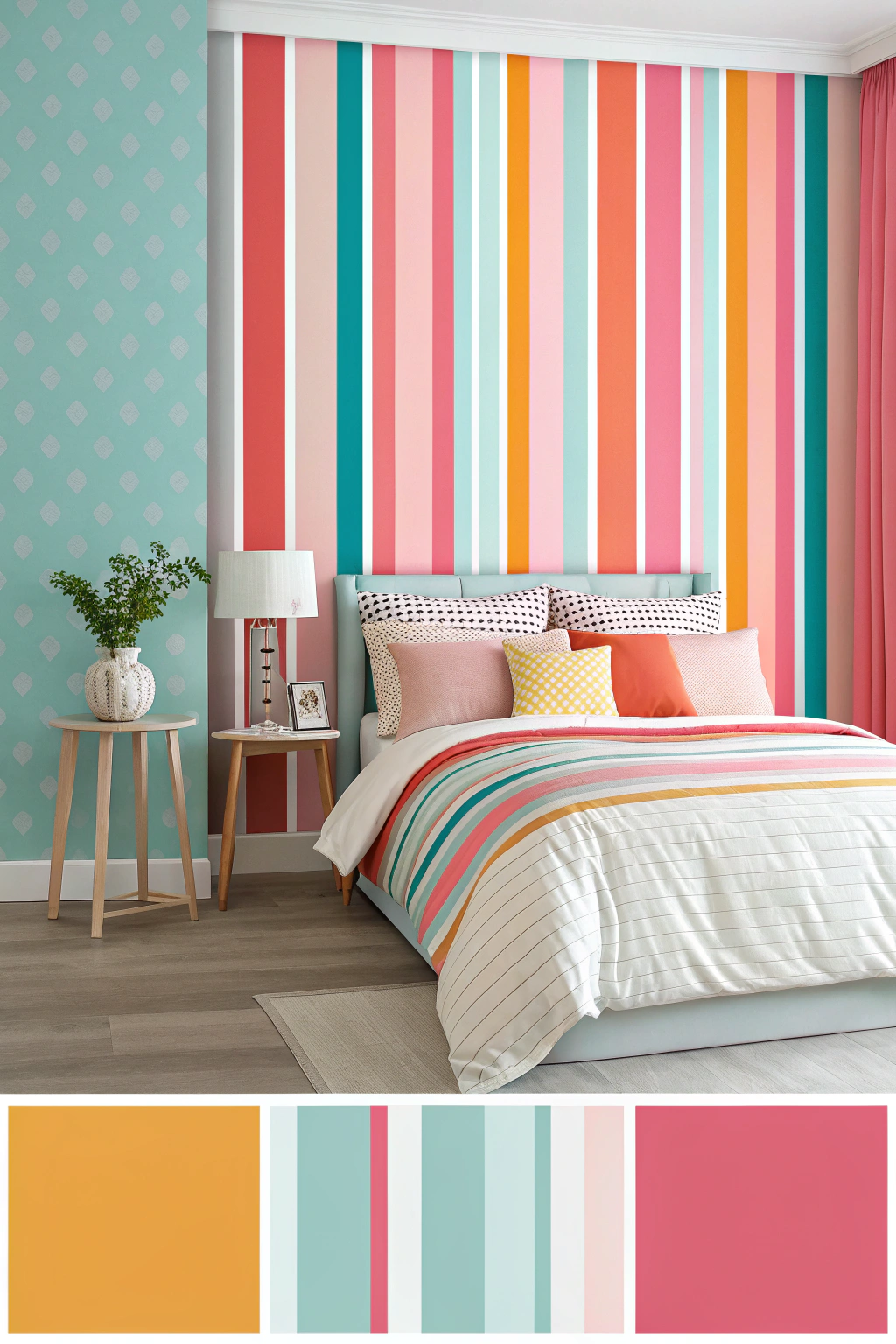 When it comes to adding visual interest to your bedroom, striped designs stand out as a stylish choice. You can opt for bold, wide stripes for a dramatic look, or soft, thin stripes for subtle elegance. Mixing colors can create a playful vibe, while monochromatic schemes offer sophistication. Experiment with horizontal or vertical orientations to transform your space and reflect your personal style.