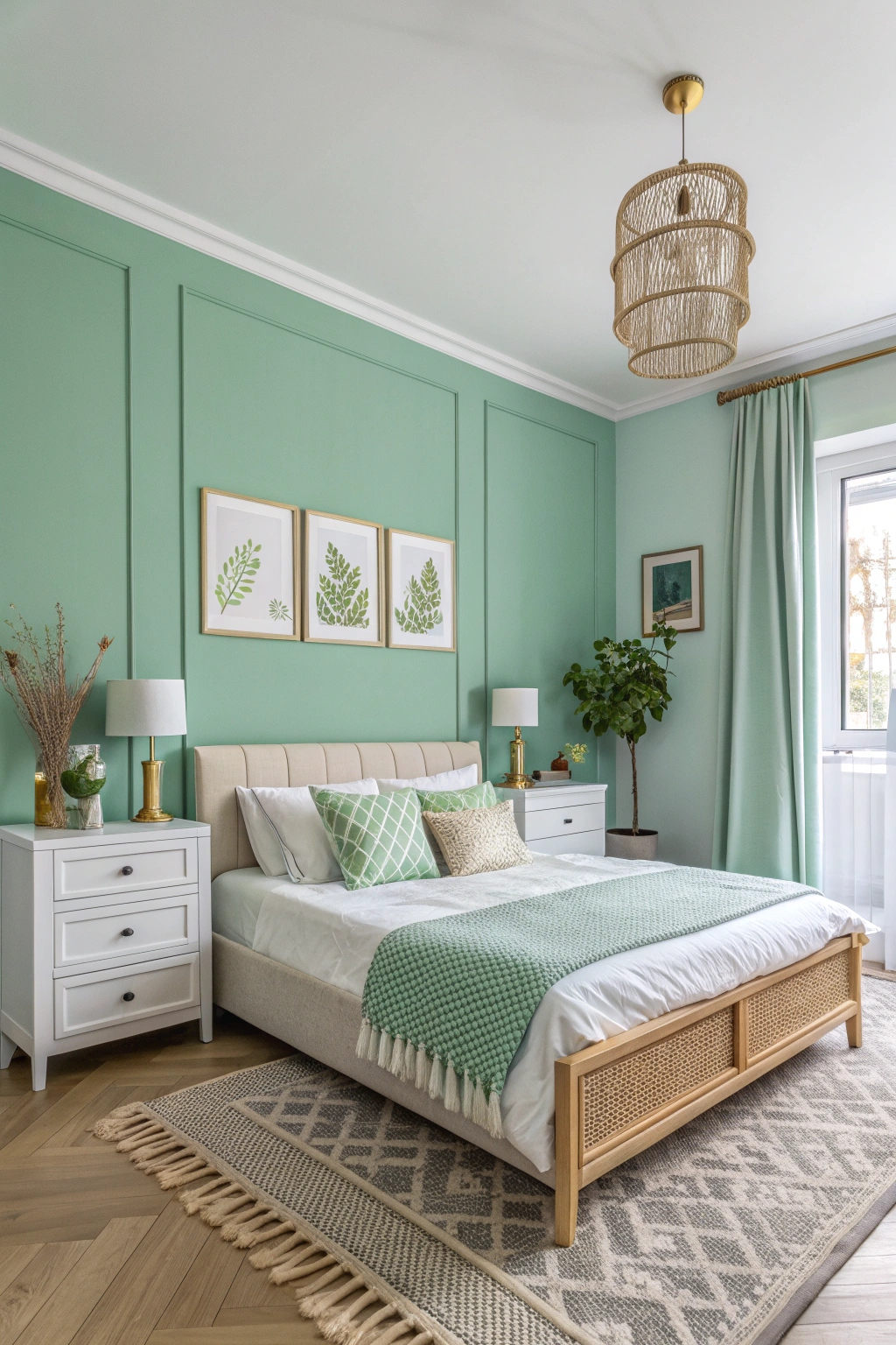 There’s something invigorating about crisp mint green that instantly uplifts a bedroom’s atmosphere. This revitalizing shade evokes feelings of tranquility and rejuvenation, making it perfect for your retreat. Pair it with white or light wood furnishings to create a serene and airy feel. Accentuate with hints of gold or natural textures for a harmonious balance, ensuring your space feels both modern and inviting.