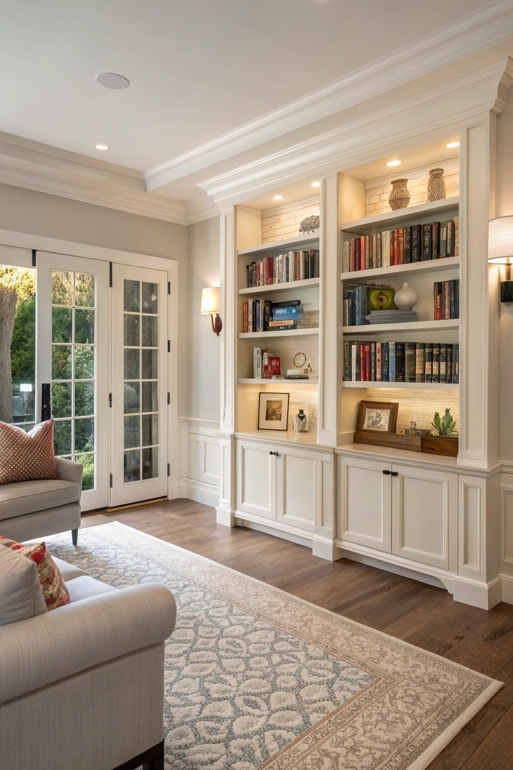 Built-in bookcases effortlessly transform your living room into a space that exudes sophistication and organization. They create a seamless design that maximizes your wall space while showcasing your favorite books and decor. You can personalize them with lighting, adjustable shelves, and a mix of open and closed storage. Plus, they enhance visual interest, making your living room feel more inviting and stylish.
