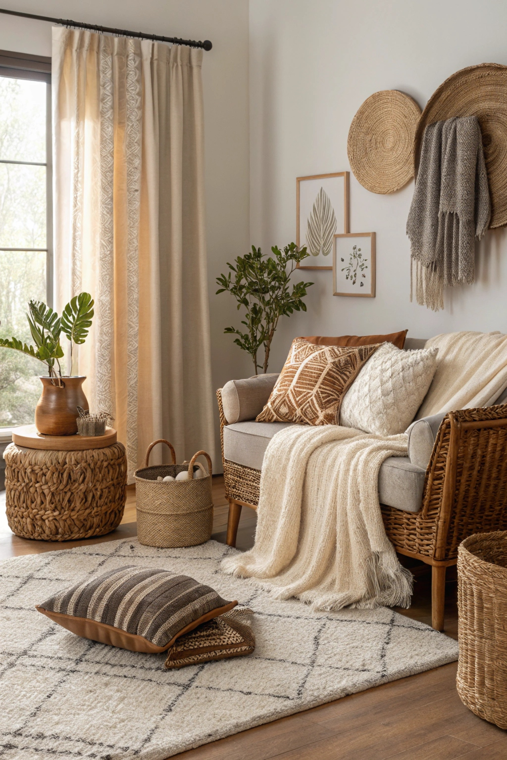 Layered textures instantly elevate your living room’s design, creating depth and interest. Combine different materials like plush rugs, soft throws, and woven baskets to add warmth. Incorporate various fabric patterns through cushions and curtains, mixing textures like linen and velvet. Don’t shy away from mixing hard and soft elements, like wooden furniture and fluffy pillows, to enhance the overall aesthetic appeal.