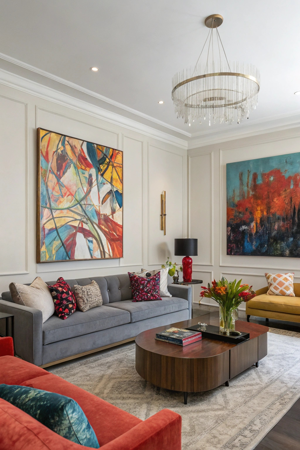Transform your living room by showcasing statement artwork that draws the eye and sparks conversation. Choose bold pieces, like a large painting or an expressive sculpture, to create focal points. Mix styles and textures to enhance the room’s character. Don’t shy away from color; vibrant artwork can energize your space, making it feel inviting and dynamic for both you and your guests.
