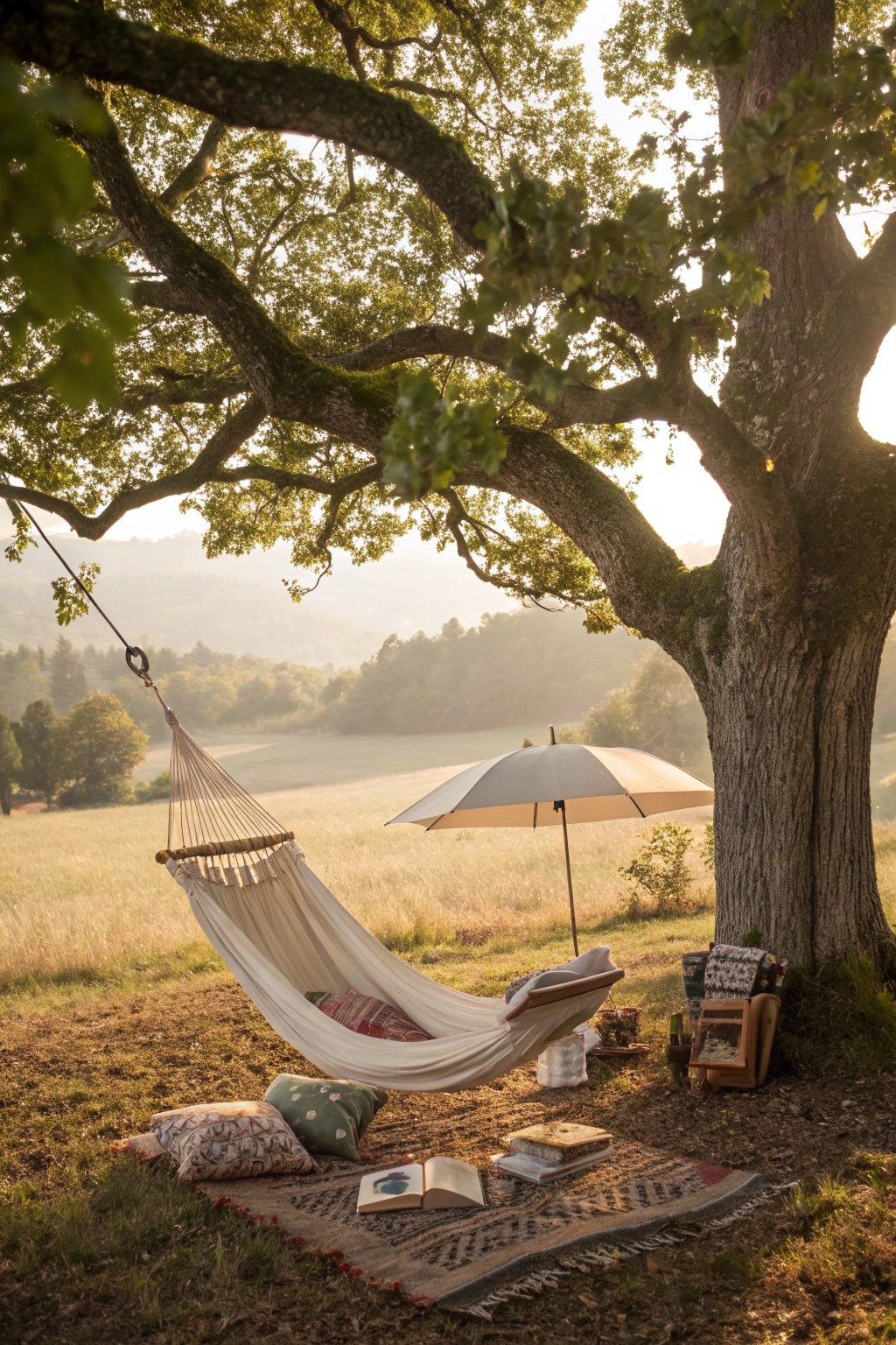 • Comfortable seating, like a hammock or outdoor lounge chair