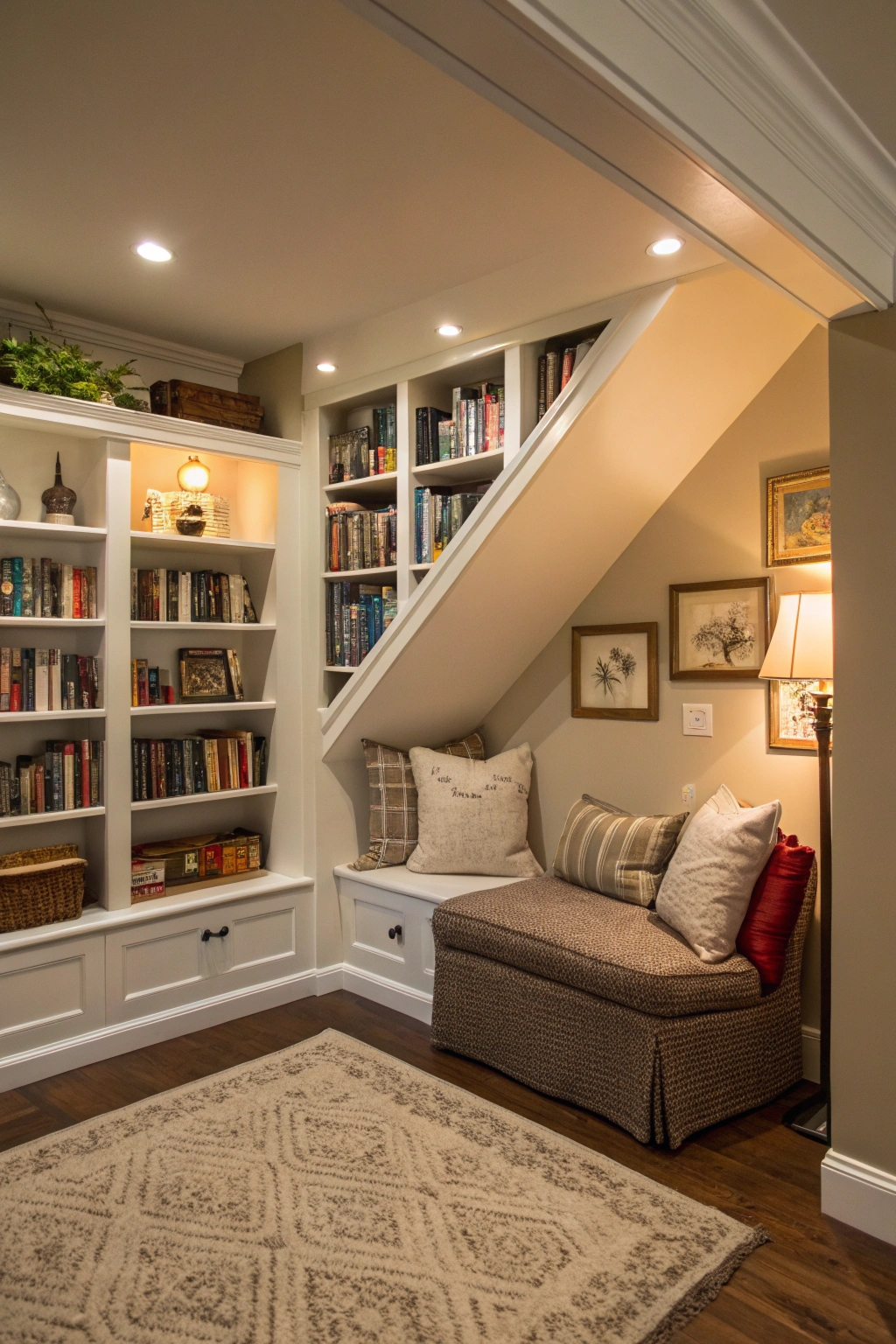 Finding innovative spaces for a cozy library can turn even the tiniest nooks into inviting retreats. Your understairs area is perfect for this transformation. Install shelves that fit snugly, displaying your favorite books and decor. Add a soft rug and some warm lighting to create a comfortable atmosphere. With a cozy chair or cushions, you’ll have a perfect reading spot beneath the stairs.