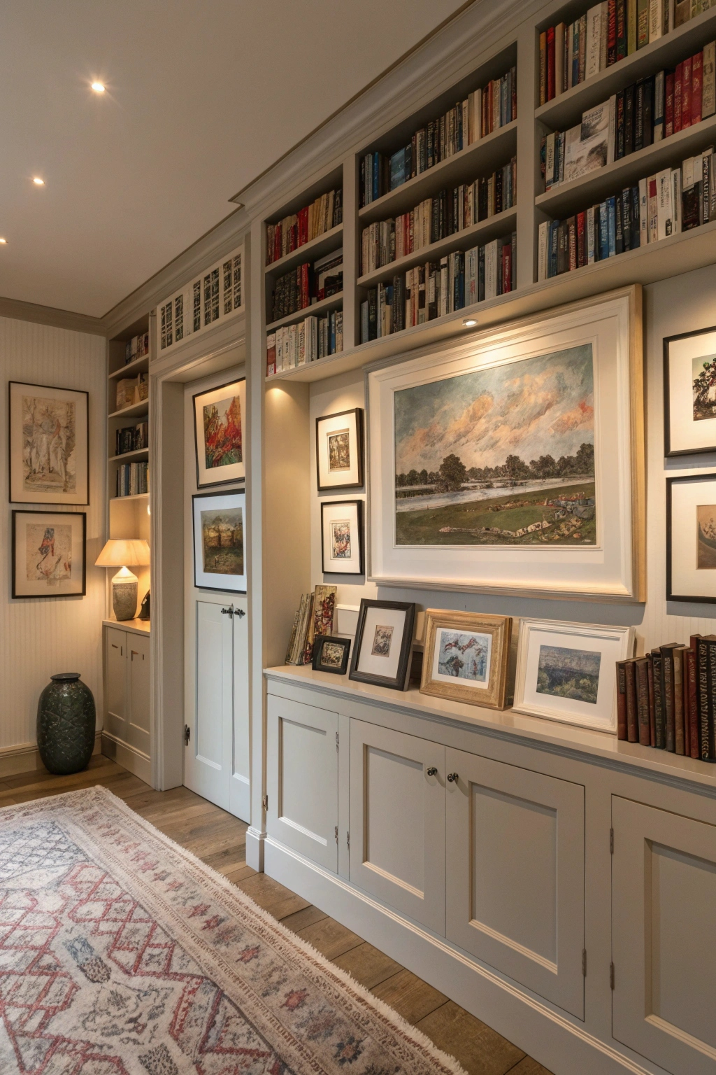 Transform your home library into a reflection of your personality by incorporating artwork that resonates with you. Choose pieces that inspire you, whether they’re paintings, prints, or photographs. Hang them on the walls or place them on shelves to create visual intrigue. Consider rotating artwork periodically to keep the space feeling fresh and engaging, ensuring your library always showcases your evolving tastes.