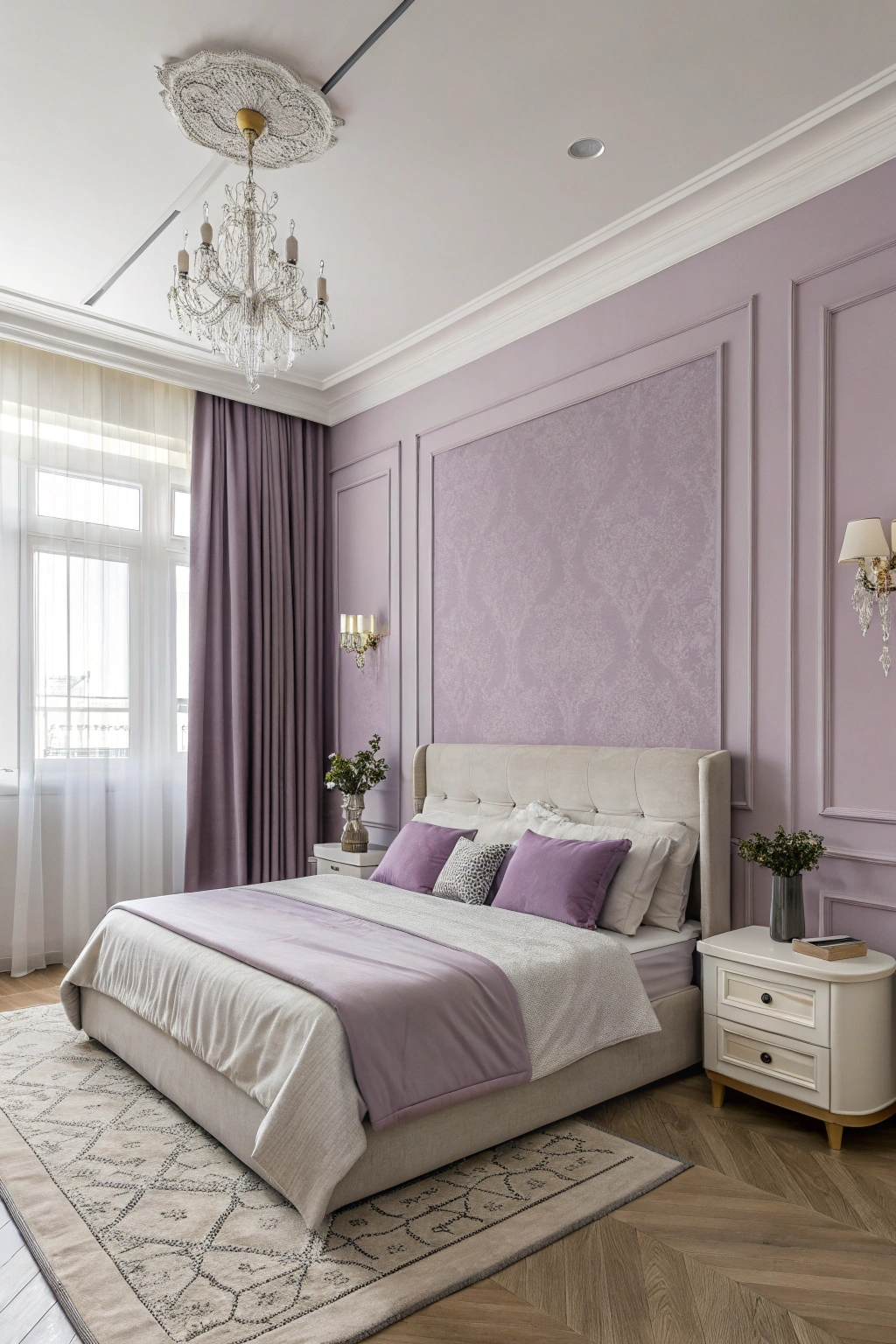 Soft lavender is a beautiful choice for your bedroom, creating a serene and calming atmosphere. This gentle hue promotes relaxation and can enhance your sleep quality. You can pair it with soft whites or muted grays for a balanced look. Incorporate lavender in your bedding, curtains, or accent walls to bring warmth and a touch of elegance to your personal space.