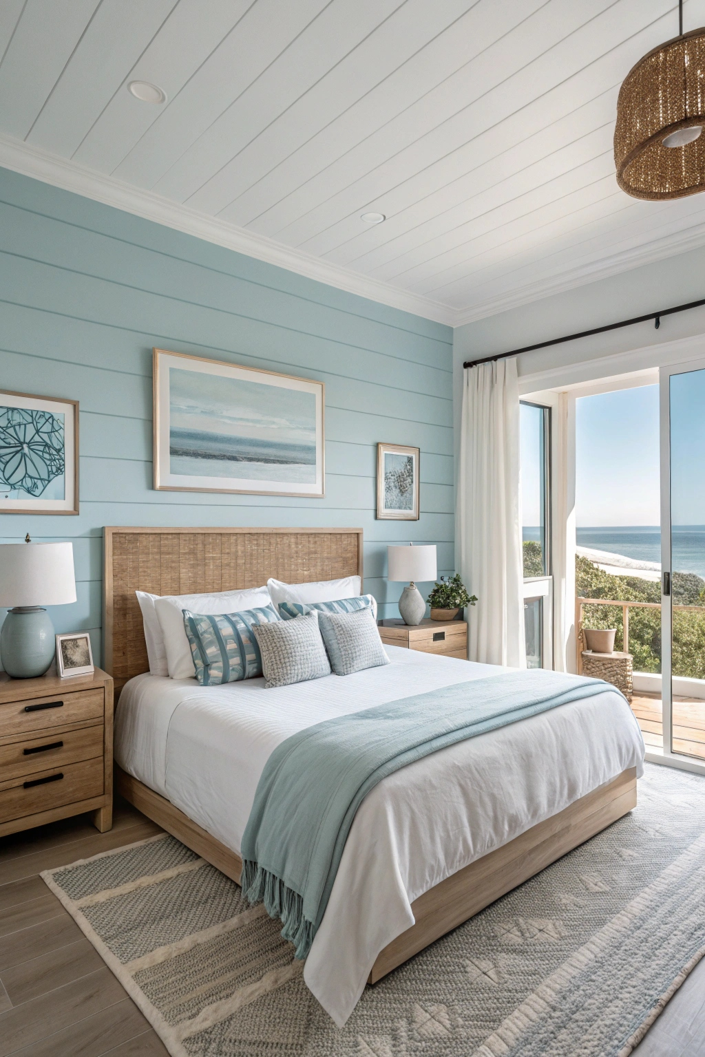 Three shades of serene sky blue can transform your bedroom into a tranquil retreat. Opt for light, airy hues to create a soothing effect, or choose deeper tones for a more dramatic ambiance. Combine these shades with soft white linens and natural wood accents, and you’ll evoke a peaceful atmosphere perfect for relaxation, rejuvenation, and a revitalizing night’s sleep.