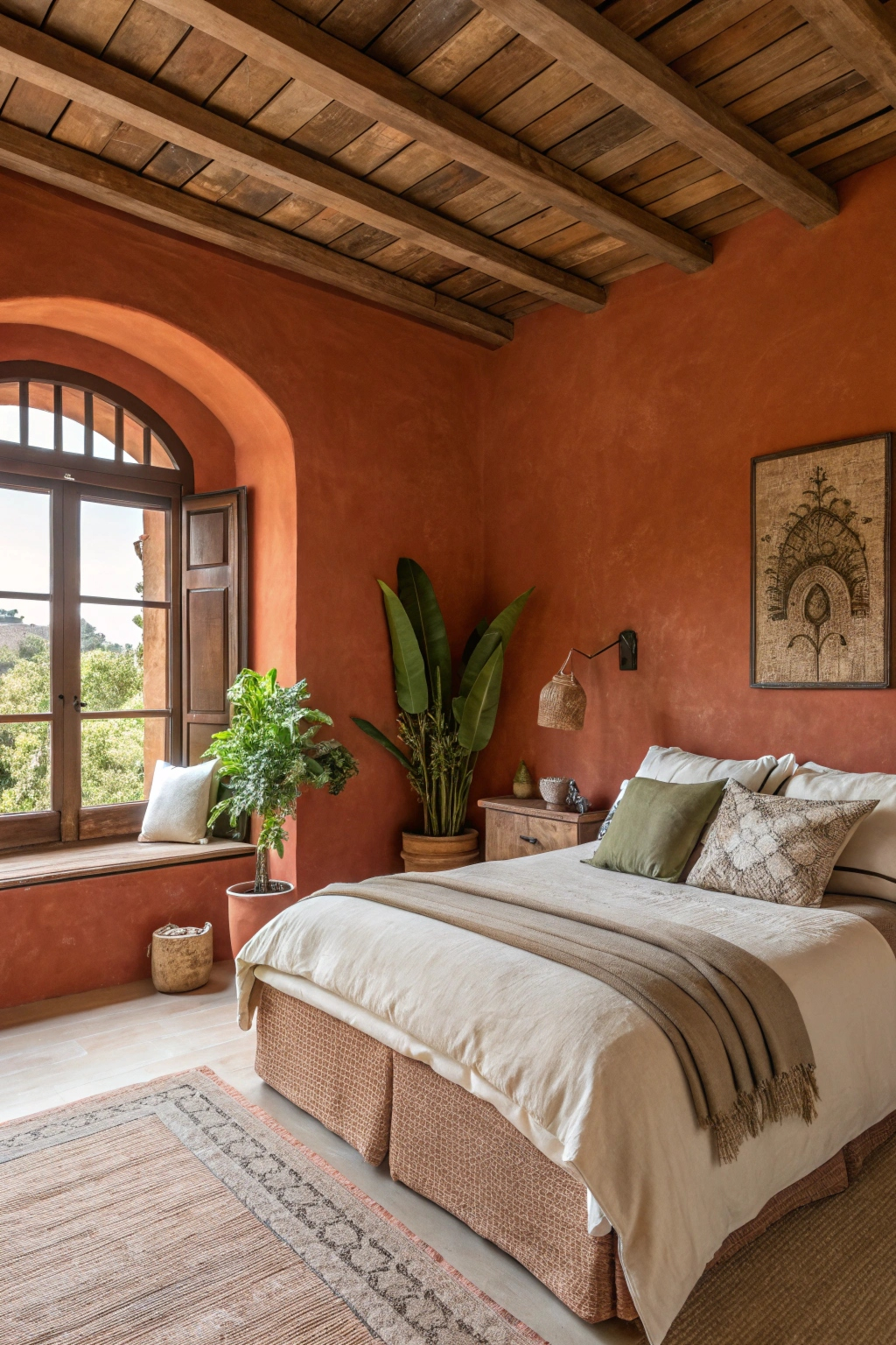 Transform your bedroom into a warm oasis with earthy terracotta. This rich hue invokes feelings of comfort and stability, making it perfect for relaxation. Pair terracotta walls with soft, neutral bedding and wooden accents to create a harmonious atmosphere. Add vibrant plants or deep green decor for contrast, enhancing the inviting vibe. You’ll love how this color brings warmth and character to your space!
