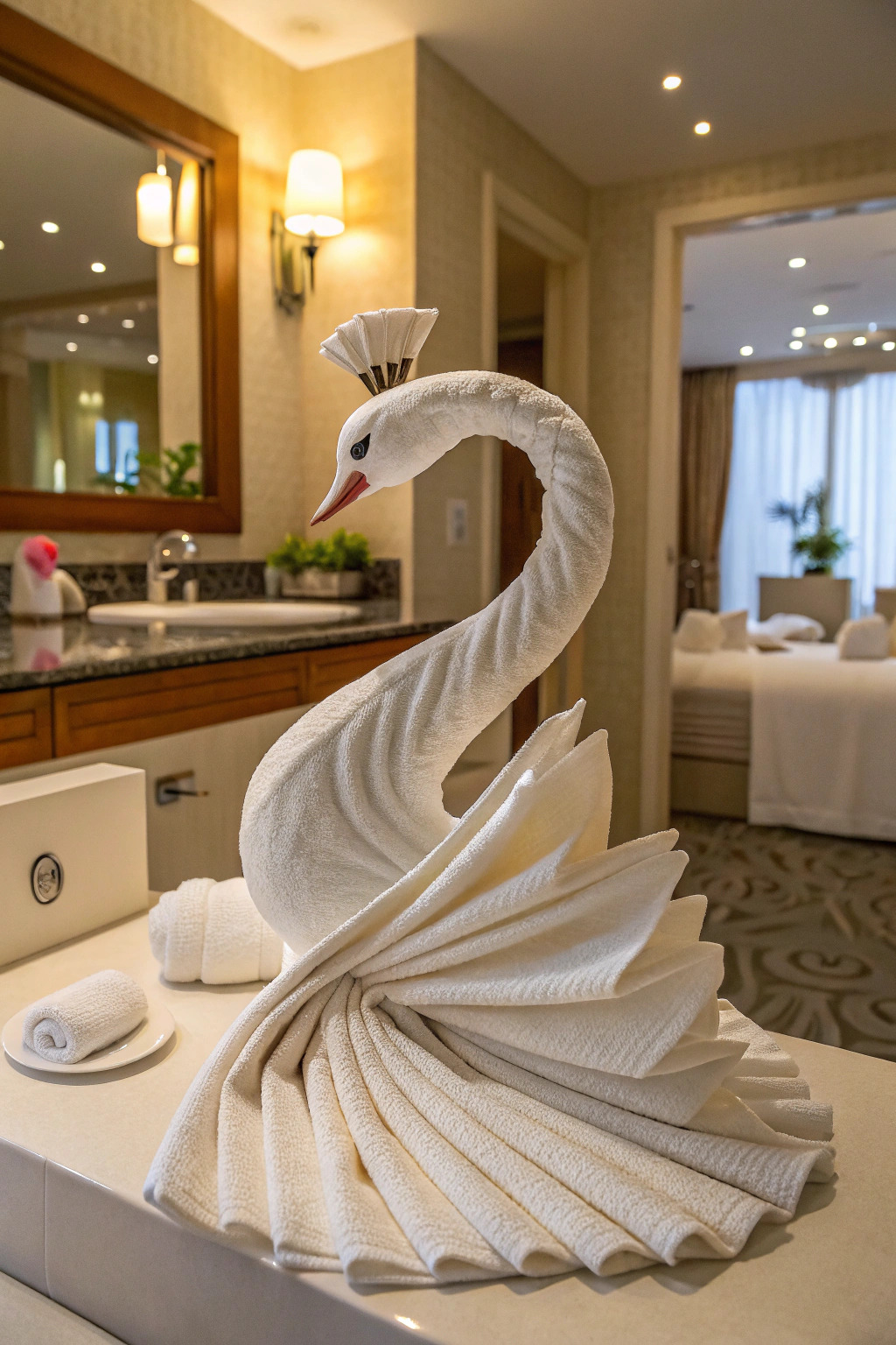 Get creative with your folds. A swan or fan fold can add a whimsical touch. These folds are great for guest bathrooms, showing that you’ve put thought into making the space welcoming.