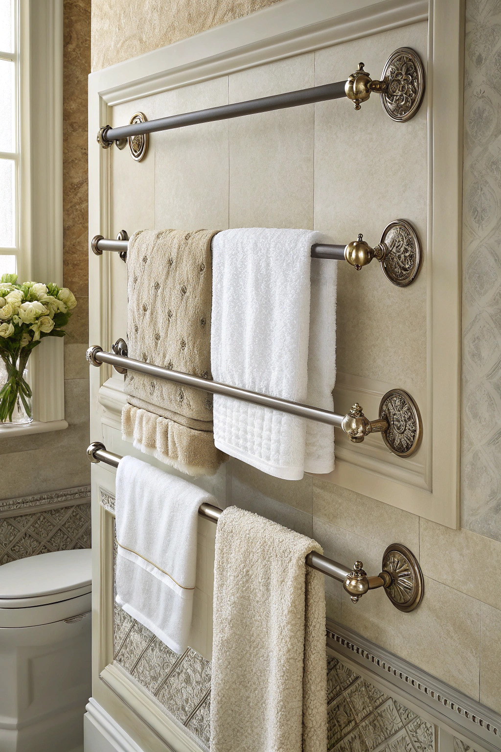 Install towel bars at different heights for a layered effect. This not only maximizes space but also creates a dynamic display. Choose bars with decorative finials or unique designs for added flair.