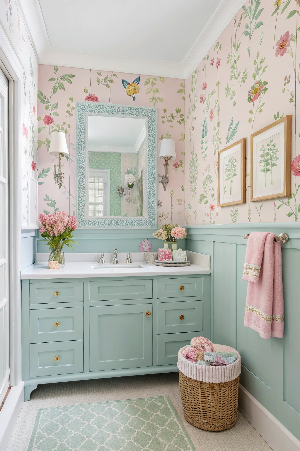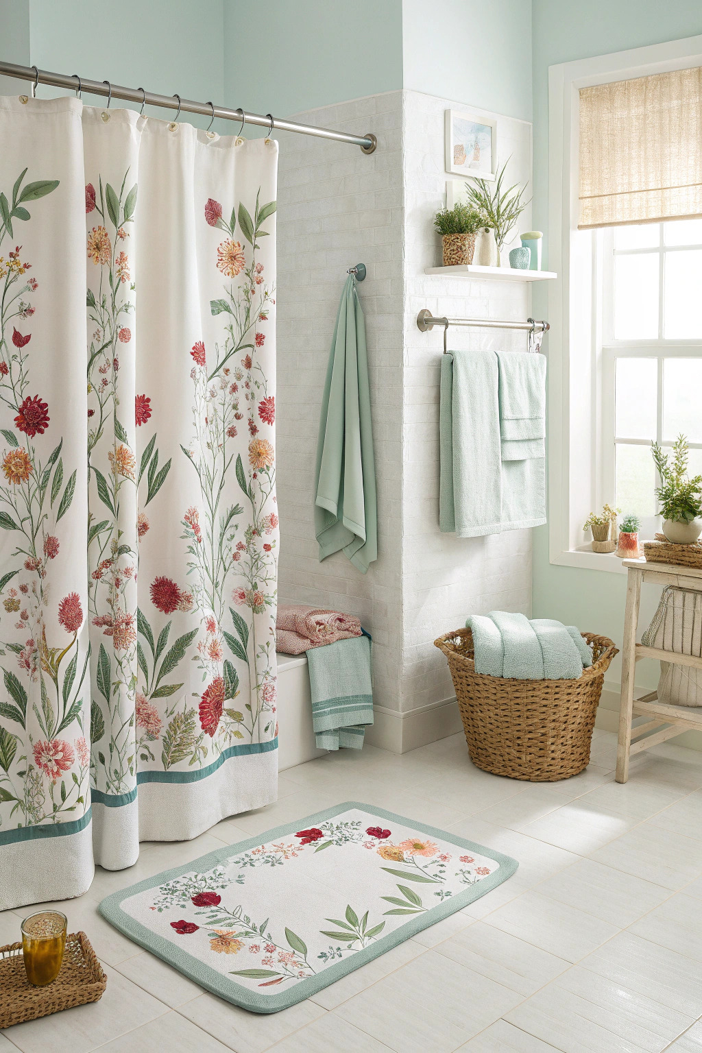 Spring calls for pastel shades and floral patterns. Light pinks, greens, and blues can refresh your bathroom. Add fresh flowers or floral prints to enhance the springtime feel.