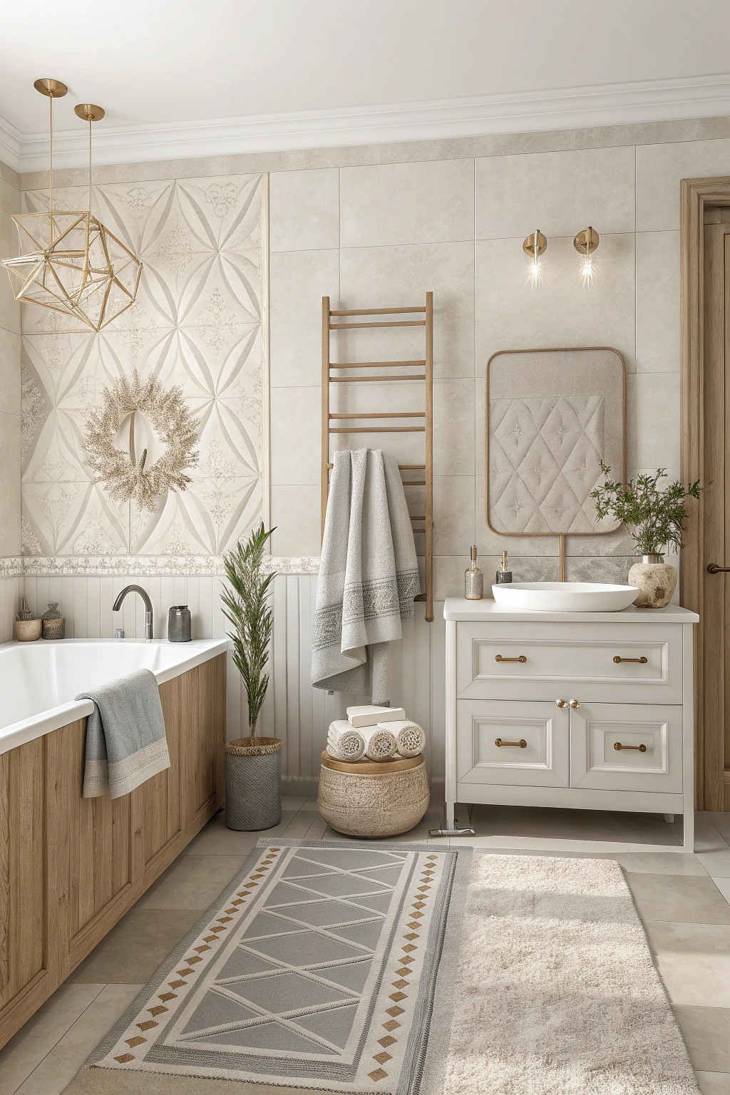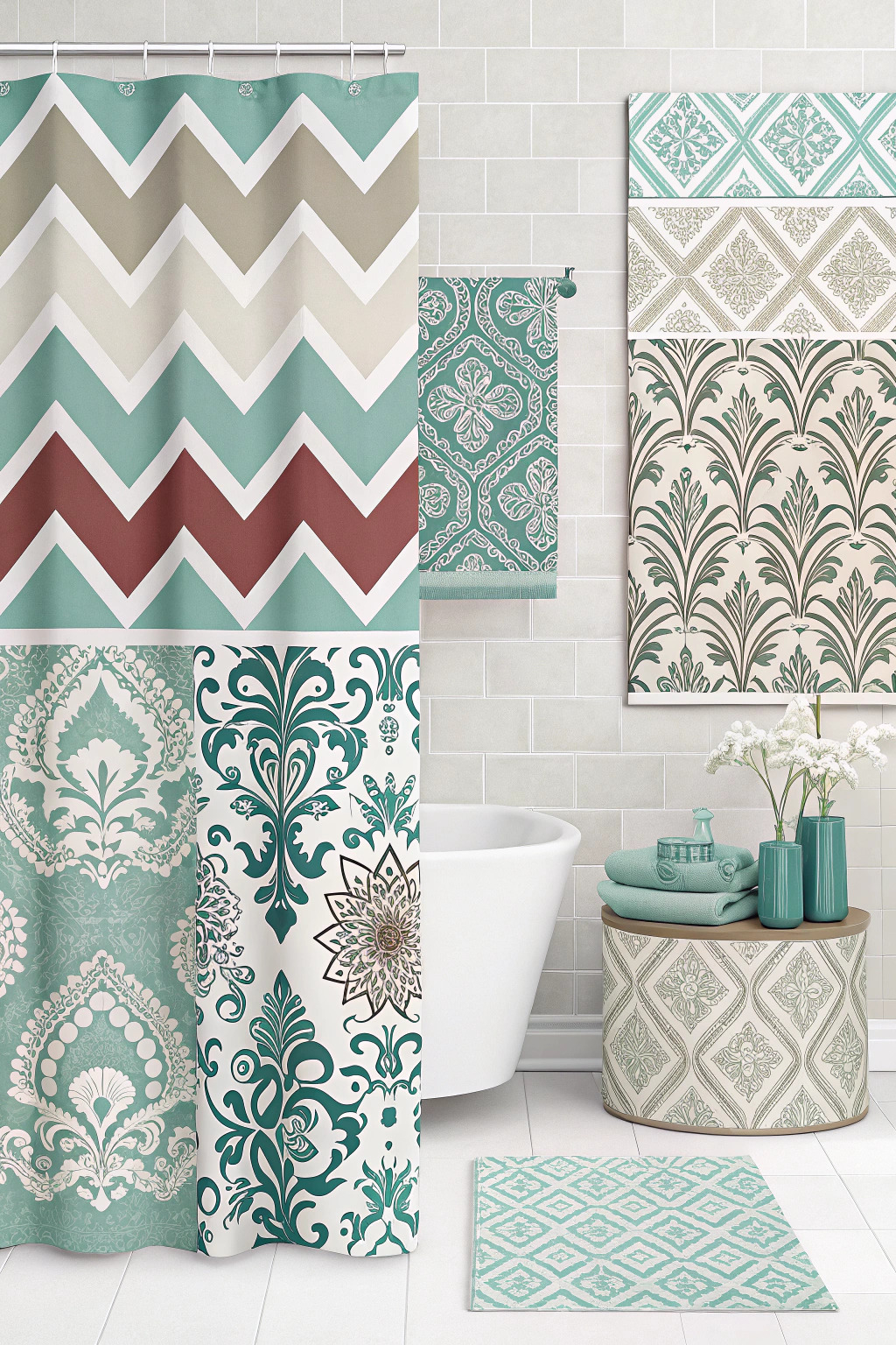Patterns can add visual interest. Stripes, chevrons, and geometric patterns are modern and trendy, while floral or damask patterns lend a classic touch. Mixing patterns within a cohesive color palette can bring depth and dimension to your bathroom décor.