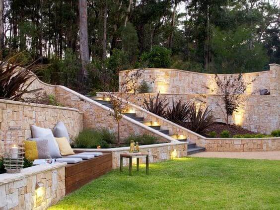 #7 An Outdoor Seating Area: Build High Retaining Walls And Decorate Them With Lighting