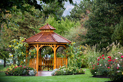 #4. Backyard Gazebo Surrounded By Lush Green Garden