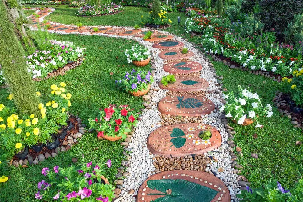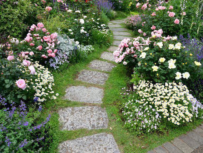 #8. Stone Path Lined With Flowers
