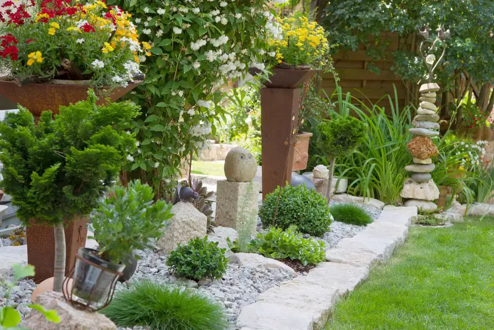 #1. Container Garden With Rock Sculptures