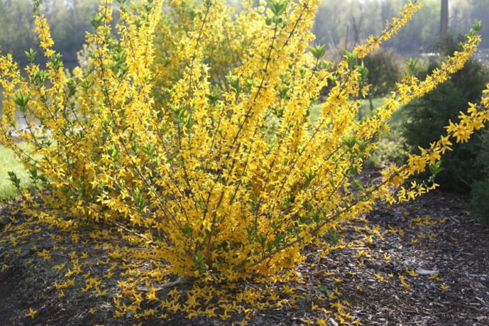 Forsythia is one of the first shrubs to burst into bloom, signaling the arrival of spring. Its arching branches are covered in bright yellow flowers before the leaves emerge. This plant grows quickly and makes a great informal hedge.