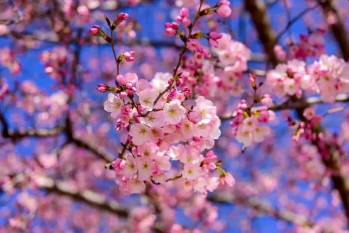 Flowering cherry trees are admired worldwide for their breathtaking pale pink blossoms. These blooms cover the branches in early spring, creating a romantic display. In fall, their leaves turn a brilliant gold, adding another season of interest.