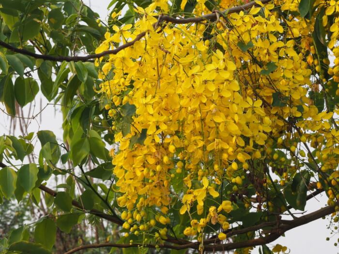 Goldenrain tree stands out with its cascades of yellow flowers in midsummer. These blossoms are followed by papery seed pods that look decorative into fall. The tree grows up to 30 feet tall, offering both shade and beauty.