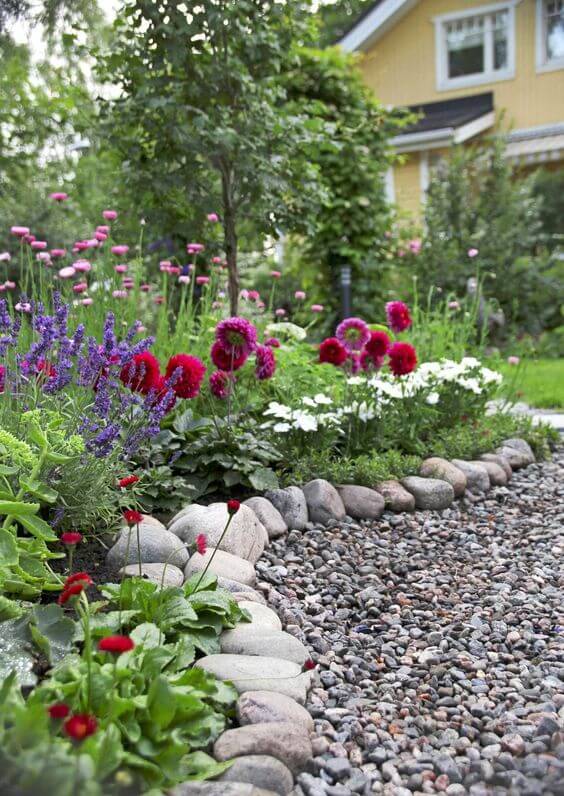 #6 Stone Edging With Colorful Flowers and Pebble Pathway To Control Weed