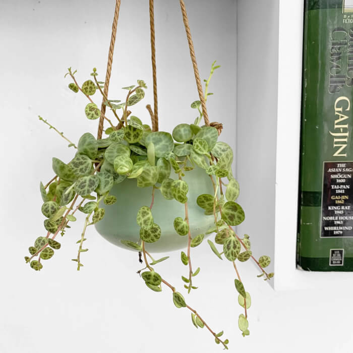 For best results, use a well-draining potting mix. Its trailing habit looks especially beautiful draping over shelves or hanging near a sunny window.