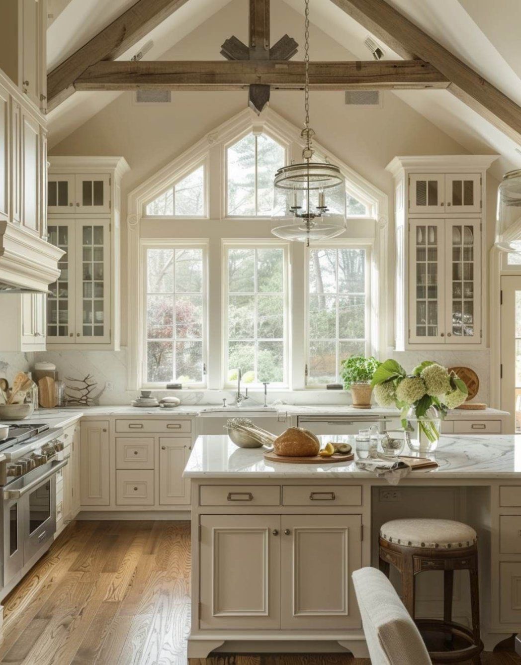 Bright White Kitchen with Warm Wooden Floors