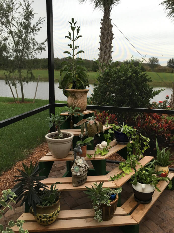 #7. DIY 4 Tiered Wooden Outdoor Plant Stand