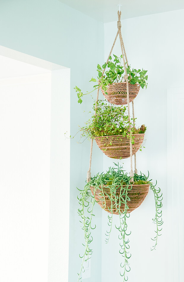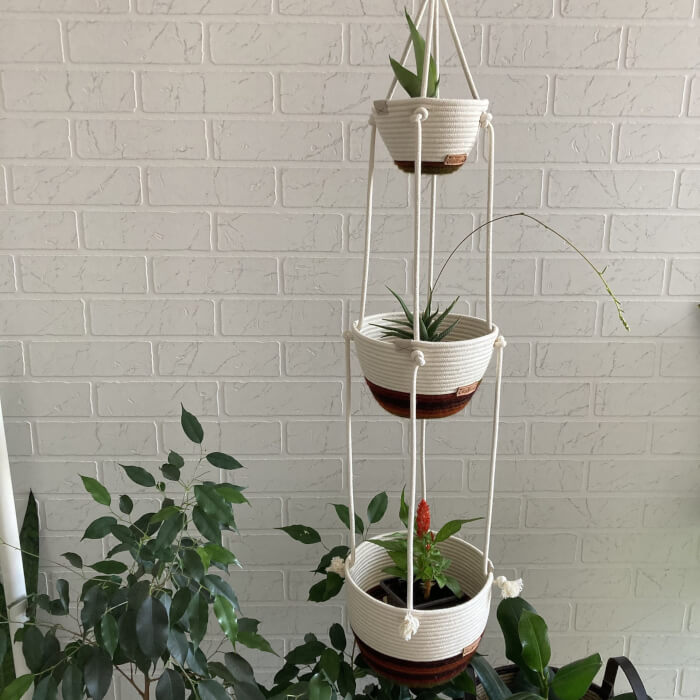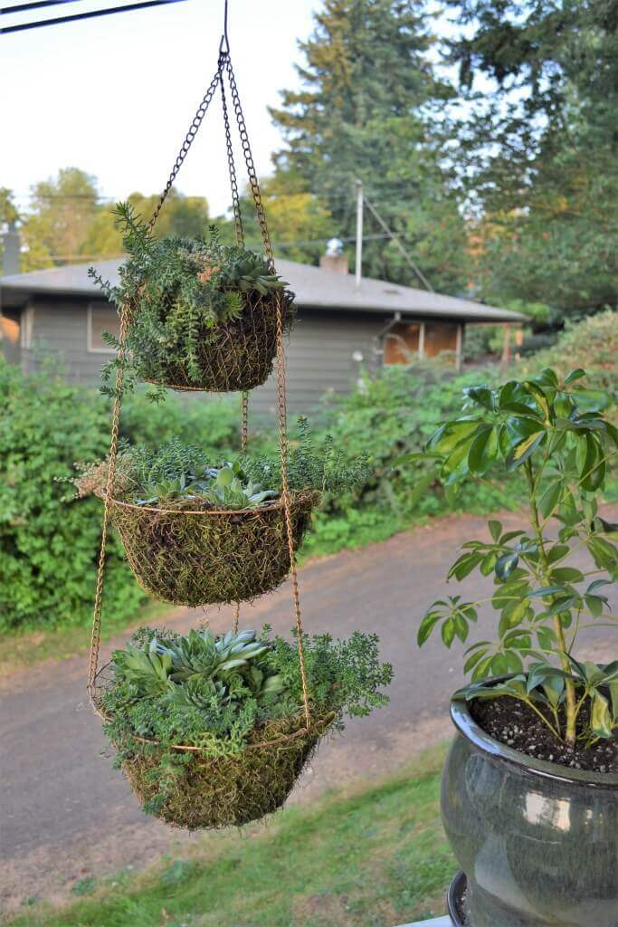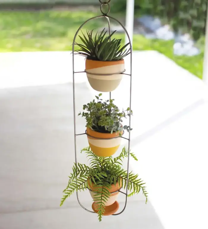 #23. Hanging Metal Frame With 3 Tiered Terracotta Planters