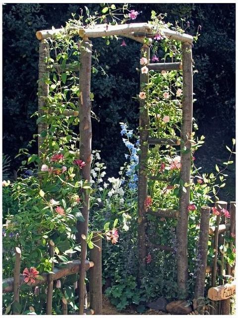 Vines climb gently along the frame, adding color and movement. It’s a great budget-friendly idea if you love a rustic, cottage-style garden.