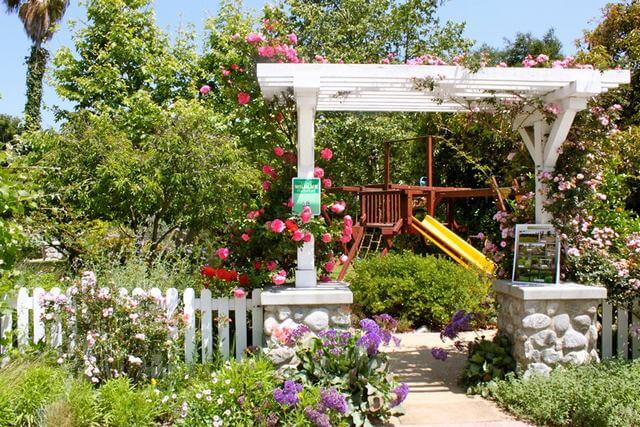 #14 Amazing Garden Arbor with White Fence and Colorful Flowers Around