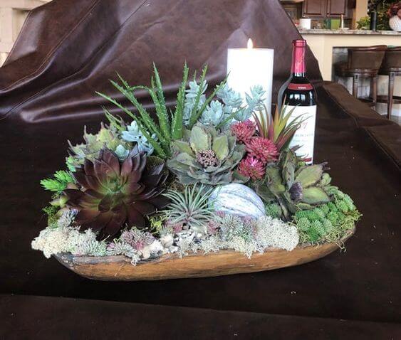 This rustic log garden feels like a little piece of the forest brought indoors. The natural wood base gives the succulents a cozy, earthy vibe, perfect for anyone who loves organic decor.
