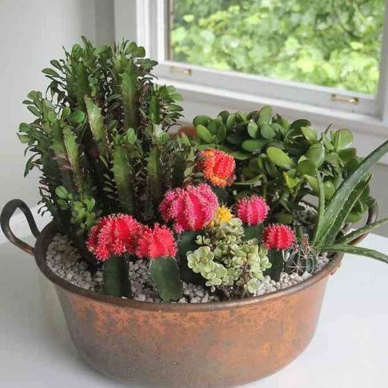#17 Cacti Garden In An Old Copper Pot