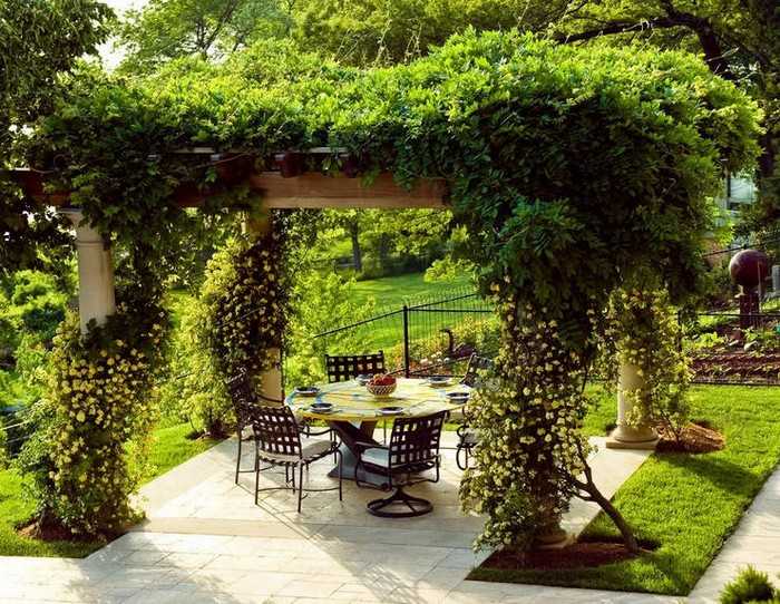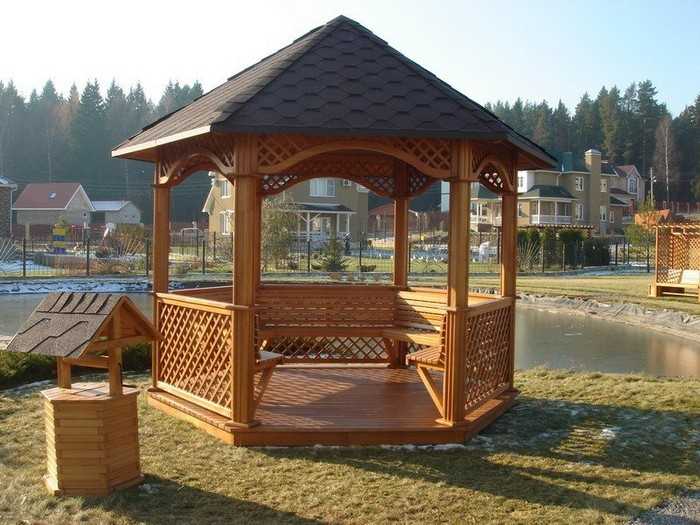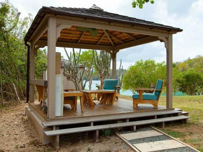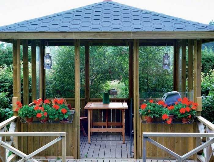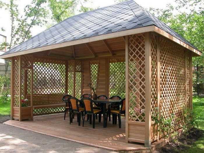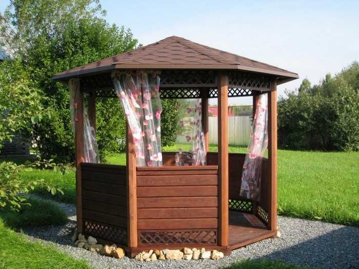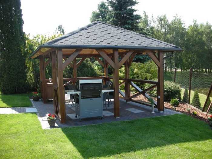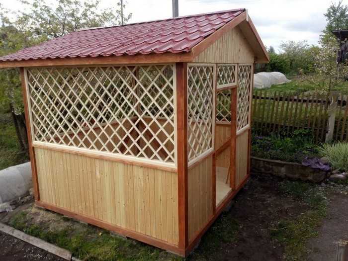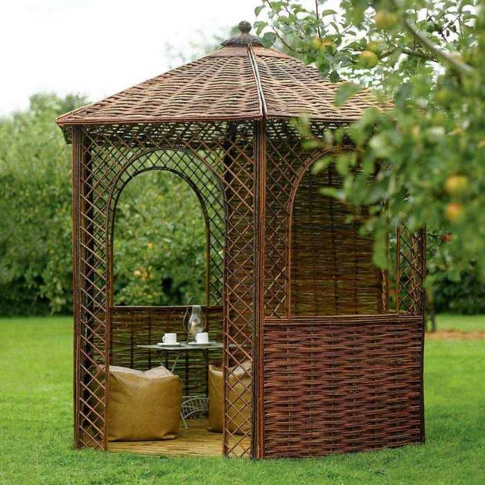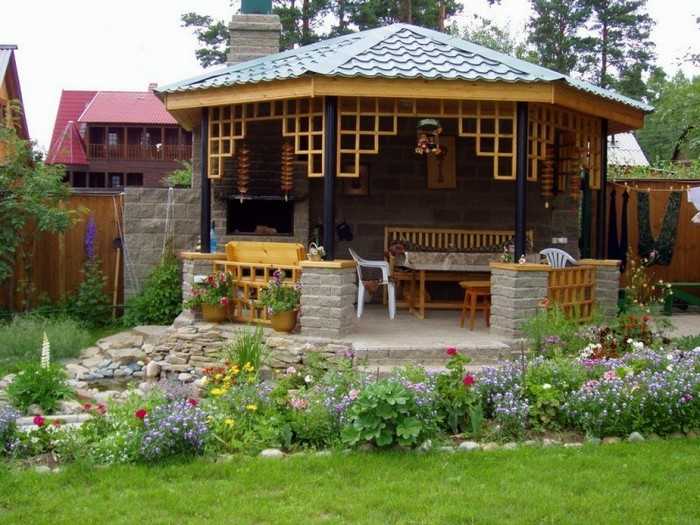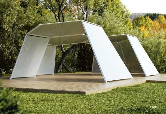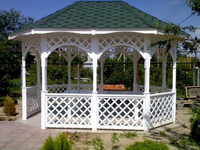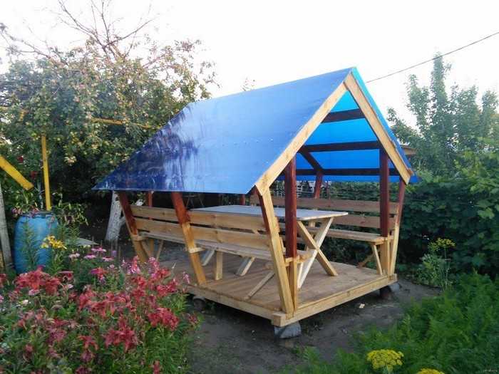 L’option la plus simple disponible pour chaque jardinier est un gazebo léger sans fondation, qui peut être construit en une journée à l’aide d’outils spéciaux. Pour sa fabrication, vous pouvez utiliser du bois, du métal ou du polycarbonate. Le choix du matériau dépend de la conception générale de votre site, des capacités financières et de la finalité de la structure.