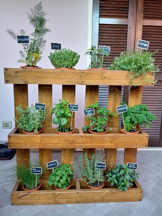 #6 Vertical Herb Garden with Wooden Pallet Shelf