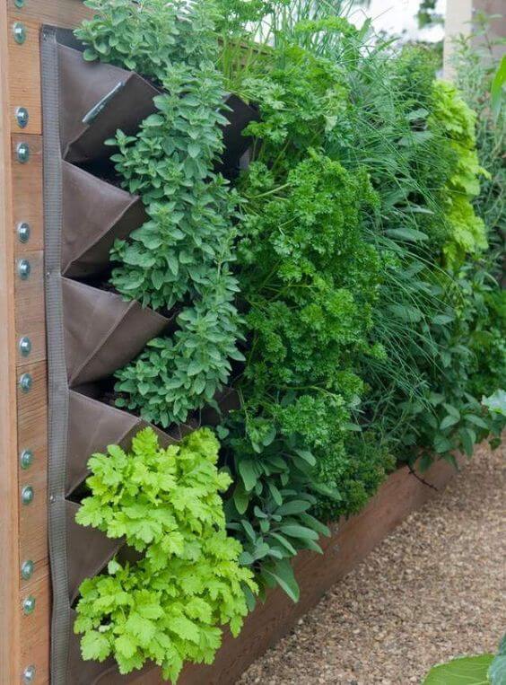 Fabric wall pockets are ideal for growing herbs like parsley, oregano, dill, sage, and cilantro; each pocket holds its own small soil bed while maximizing vertical space. It’s a brilliant choice for small patios, balconies, or narrow walkways.