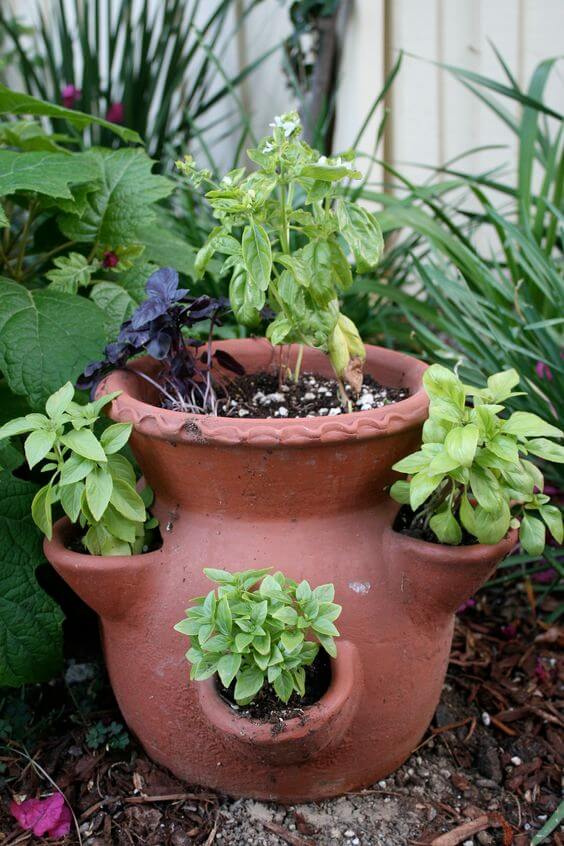 This classic strawberry pot works brilliantly for growing multiple herbs in a compact space. Each side pocket lets you plant a different variety think oregano, purple basil, and lemon thyme without their roots competing too much.