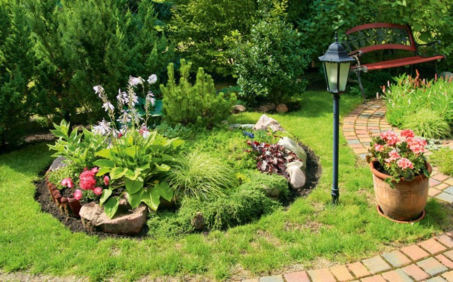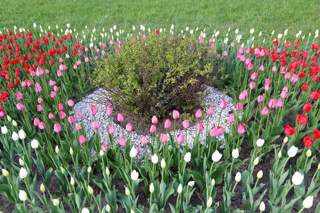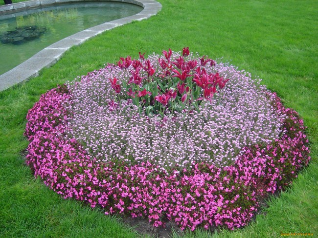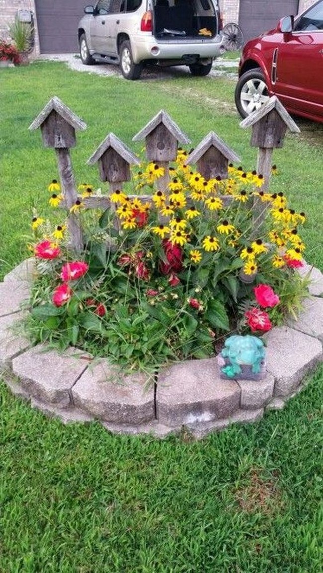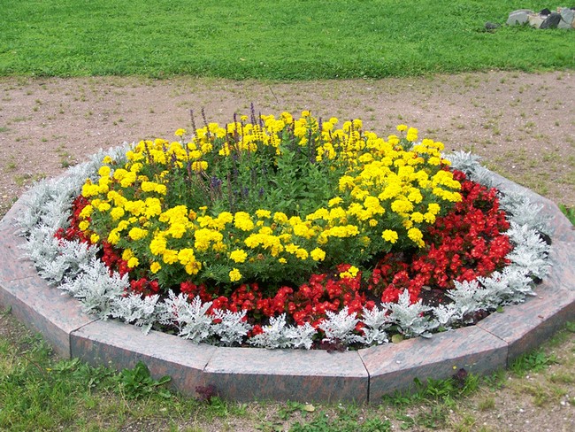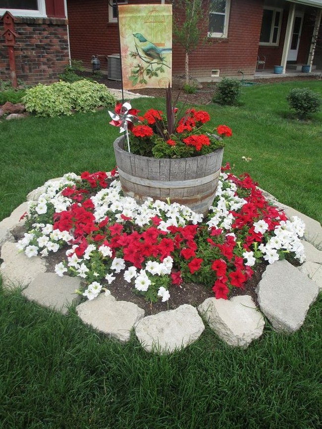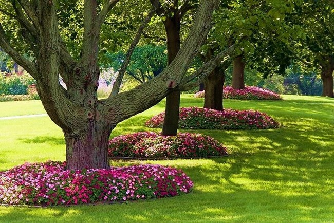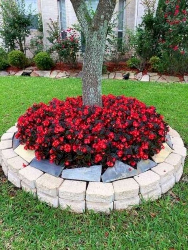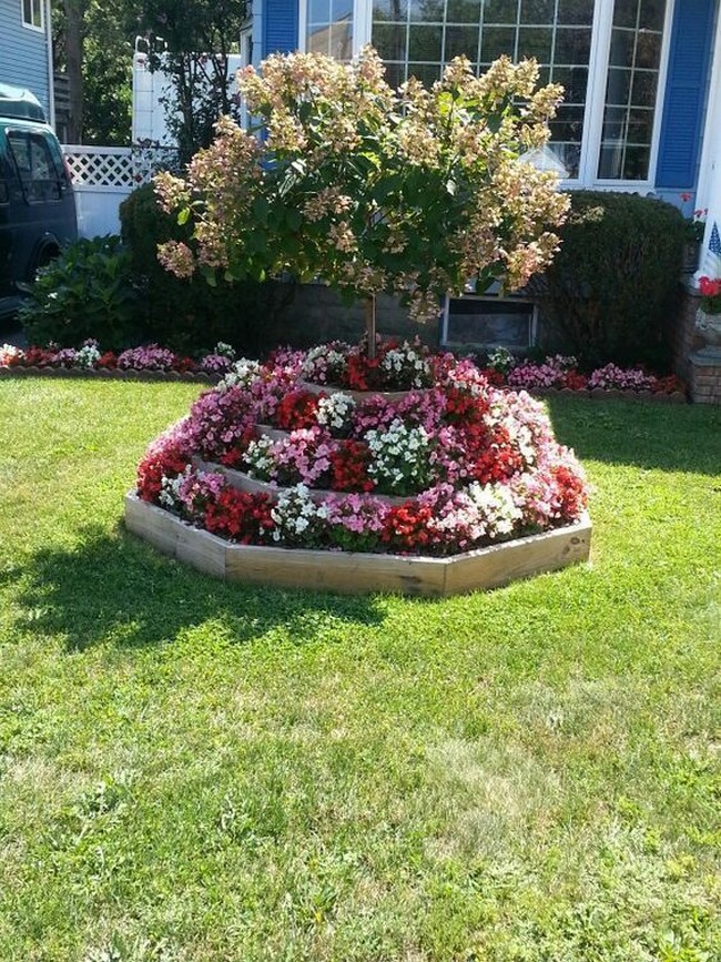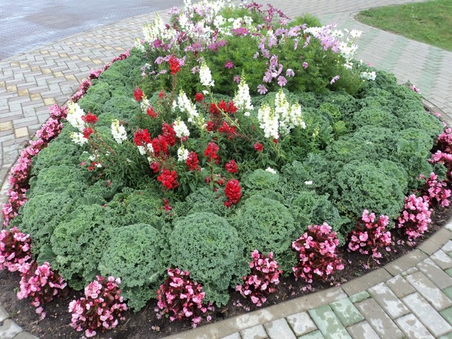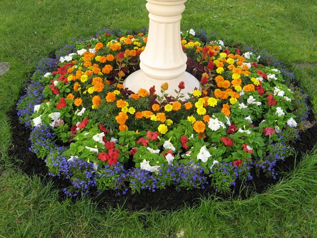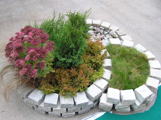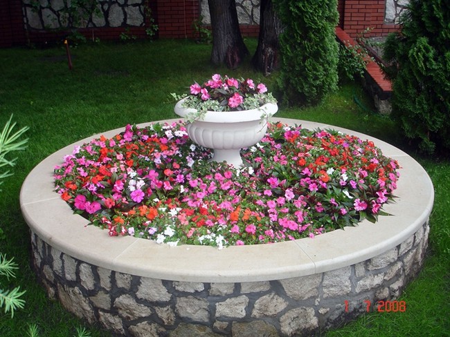 L’avantage de la forme ronde est qu’elle est belle de tous les côtés. Presque toujours, des fleurs y sont également plantées en cercle.